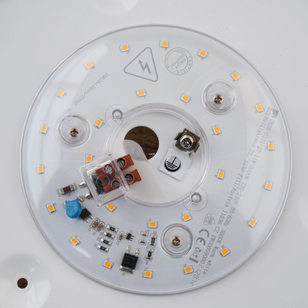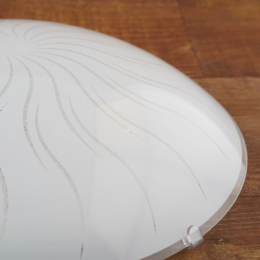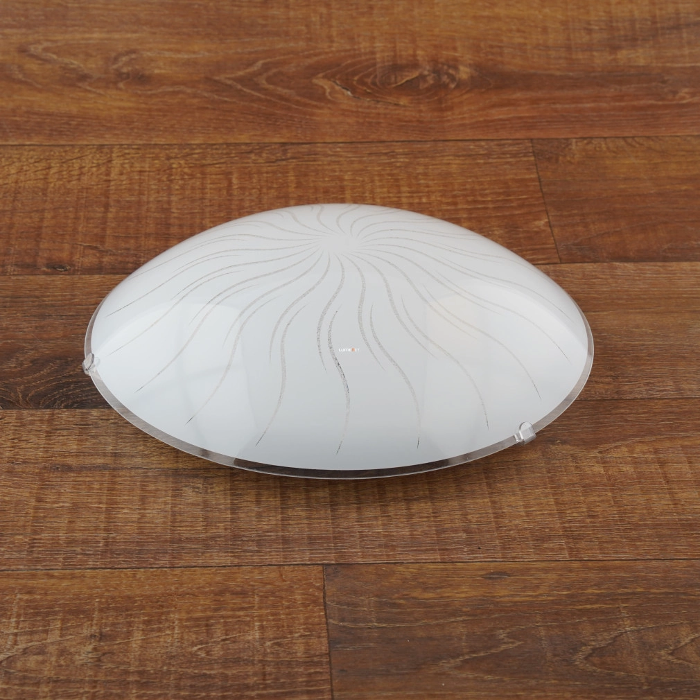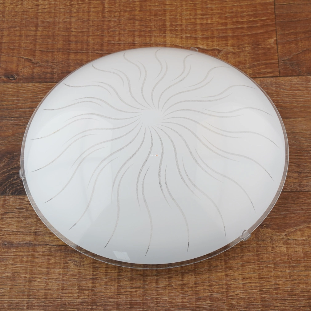 A Margitta Eglo 96111 mennyezeti LED lámpa modern stílusú, fehér színű kialakítással és napsugár mintás üveg burával rendelkezik. A 31,5 cm átmérőjű lámpatest 11 W teljesítményű, integrált LED modult tartalmaz, amely 960 lumen fényáramot biztosít melegfehér, 3000 K színhőmérsékleten. A lámpa üveg és acél anyagból készült, IP20 védettségi besorolással rendelkezik, így elsősorban beltéri használatra alkalmas. A termék súlya 1,29 kg, a csomagolás méretei 35 x 35 x 11 cm. A Margitta Eglo 96111 LED lámpa energiatakarékos működést és egyenletes fényeloszlást kínál, alkalmas nappalik, hálószobák vagy más lakóterek megvilágítására.