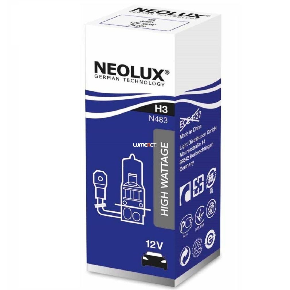 Neolux H3 off-road halogén fényszóró izzó, 12V, 100W, 3200K, 2300 lumen, nagy teljesítmény, N483, 1db/doboz