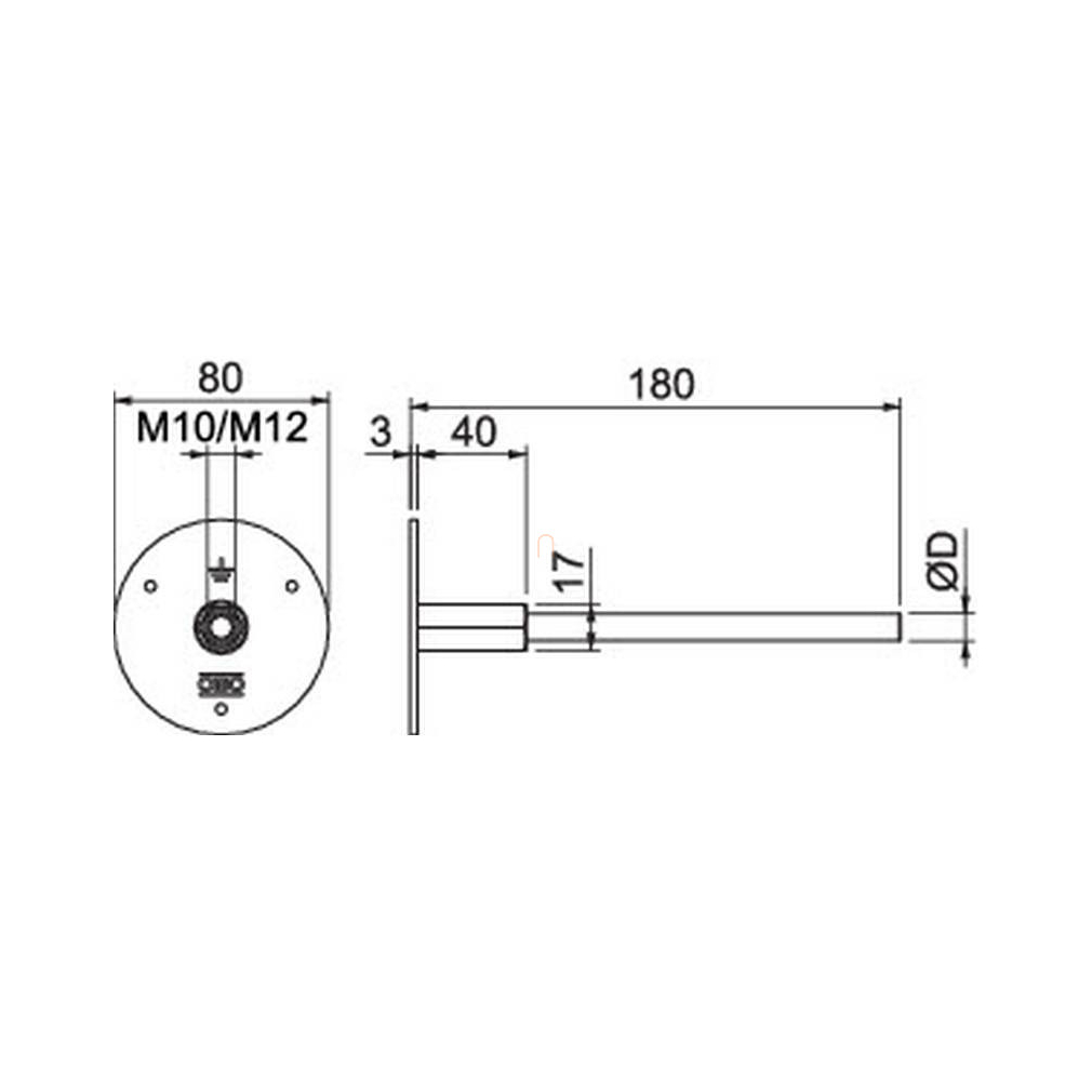földelési fixpont rozsdamentes rúddal V4A M10/M12, V4A, 1.4404