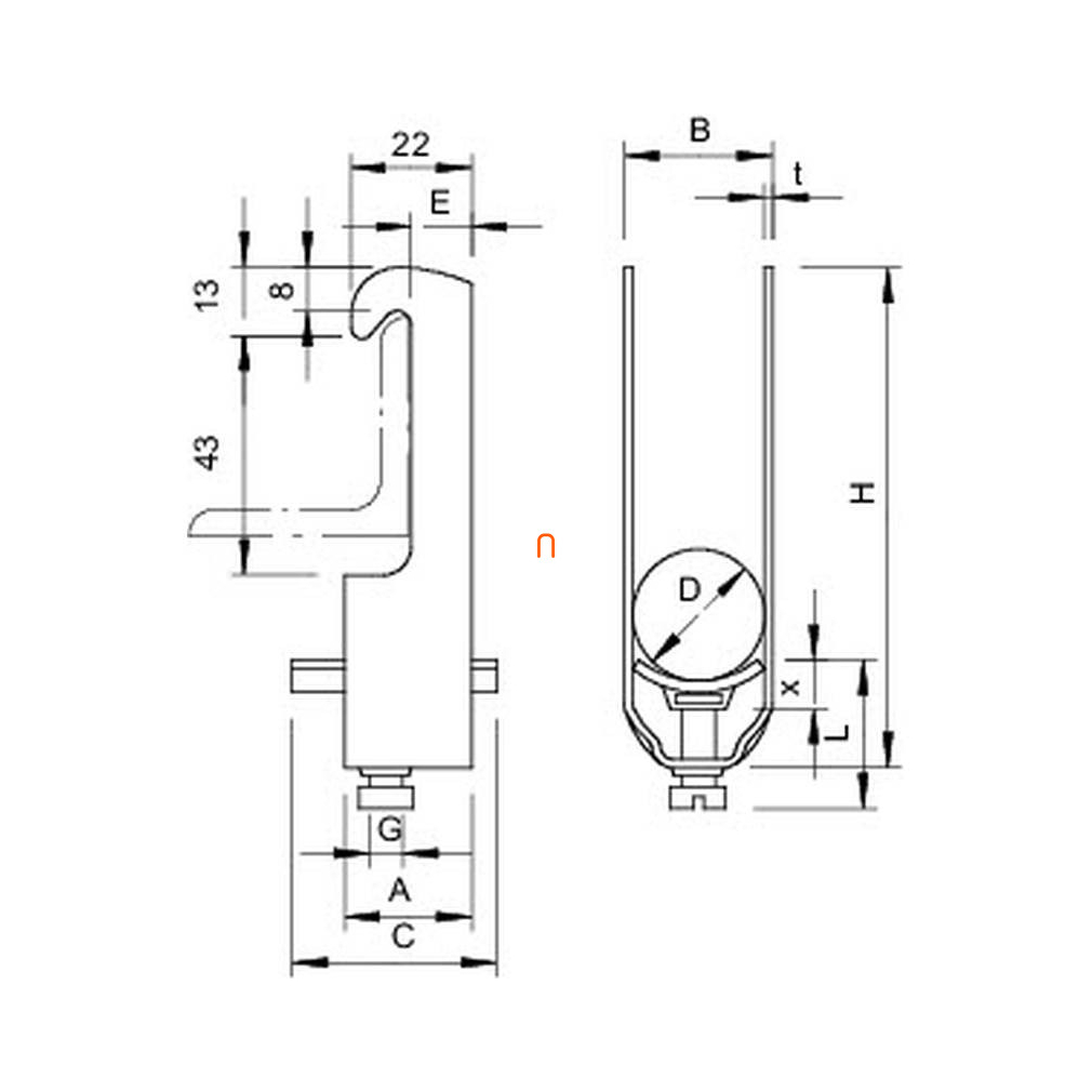 OBO BBS kengyeles bilincs W-kivitel tűzihorganyzott 1 kábel részére műanyag nyomóvályúval 16-22mm, 40mm szögvashoz 2056W 22 FT 1180223