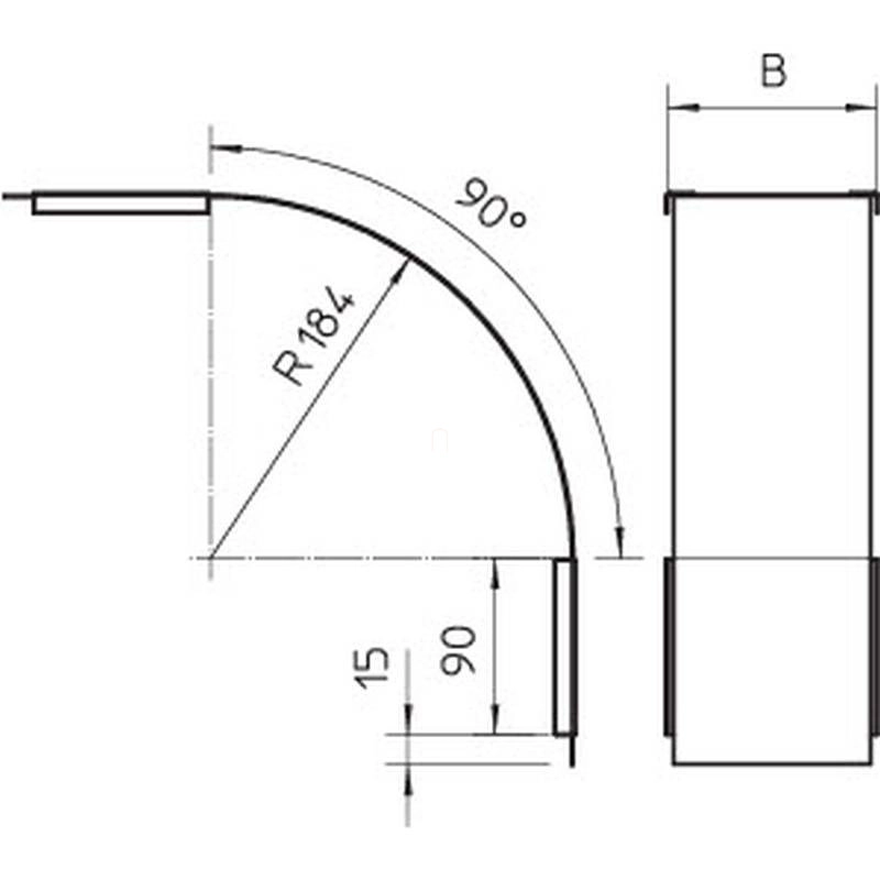 Obo fedél 90°-os sarokidomhoz eső B400mm, szalaghorganyzott cink/alumínium, Double Dip, DIN EN 10346, cink 7131644