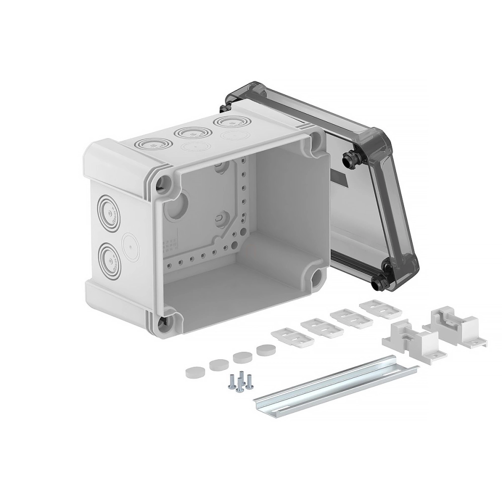 OBO X10 R LGR-TR kötődoboz átlátszó fedéllel, sínnel 190x150x125mm IP67 2005096