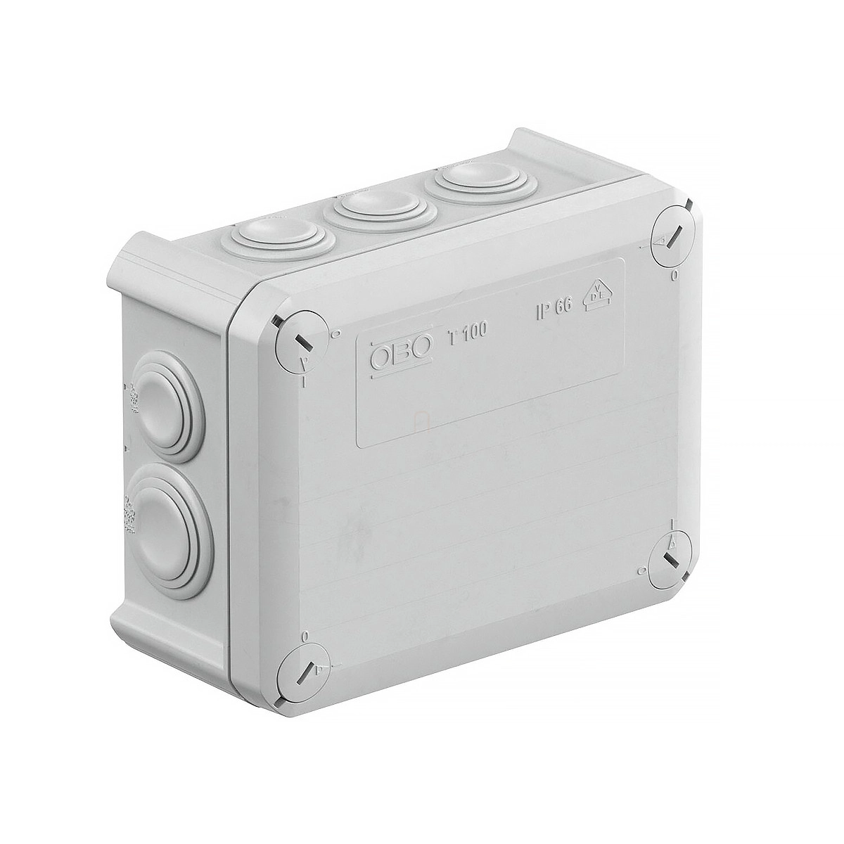 OBO T 100 M25-M32 Leágazódoboz bevezetőnyílások: 8xM25 2x M32 150x116x67 világosszürke 2007081