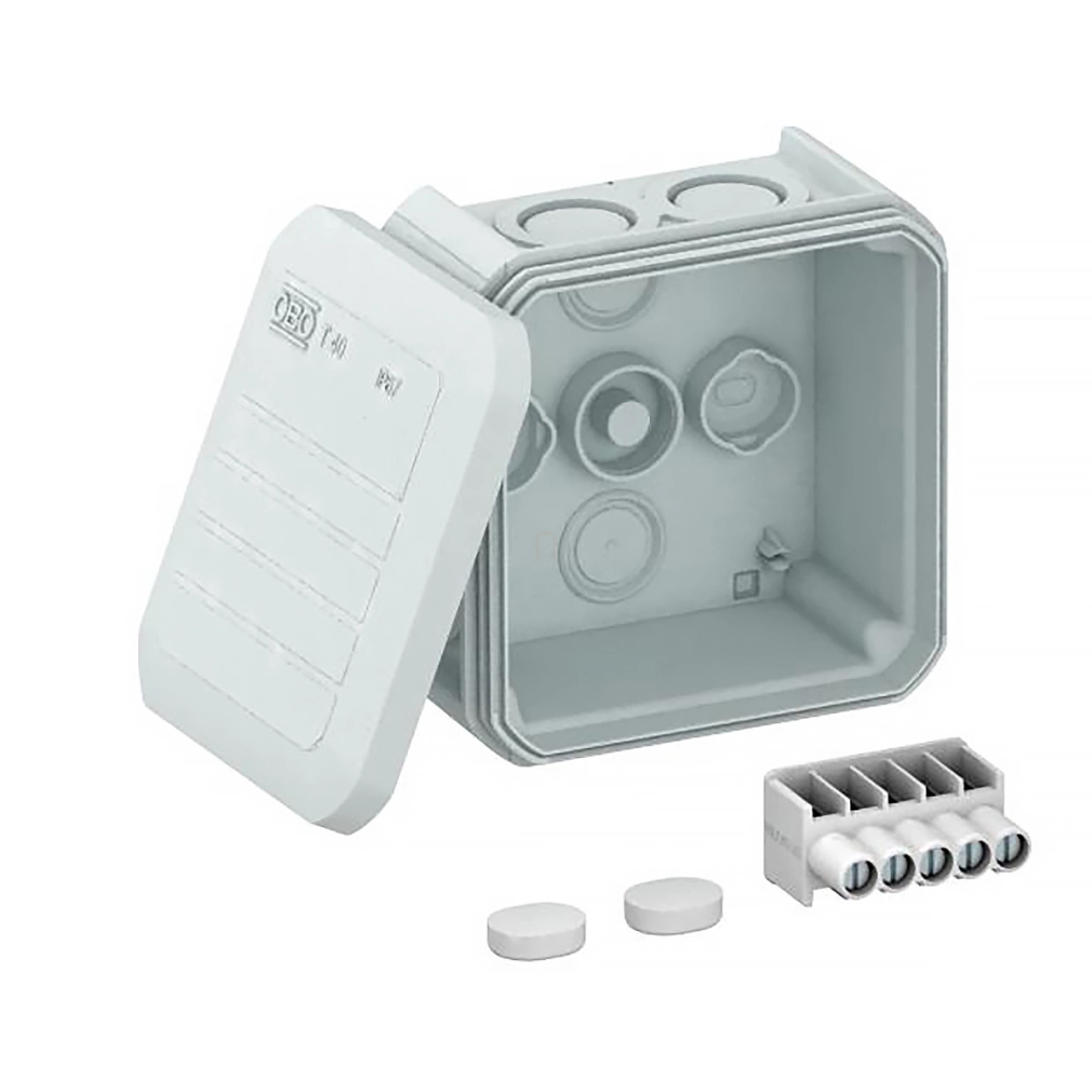 OBO T 40 M20 KL Leágazódoboz M20 bevezetés + sorkapocsléc 90x90x52 világosszürke 2007904