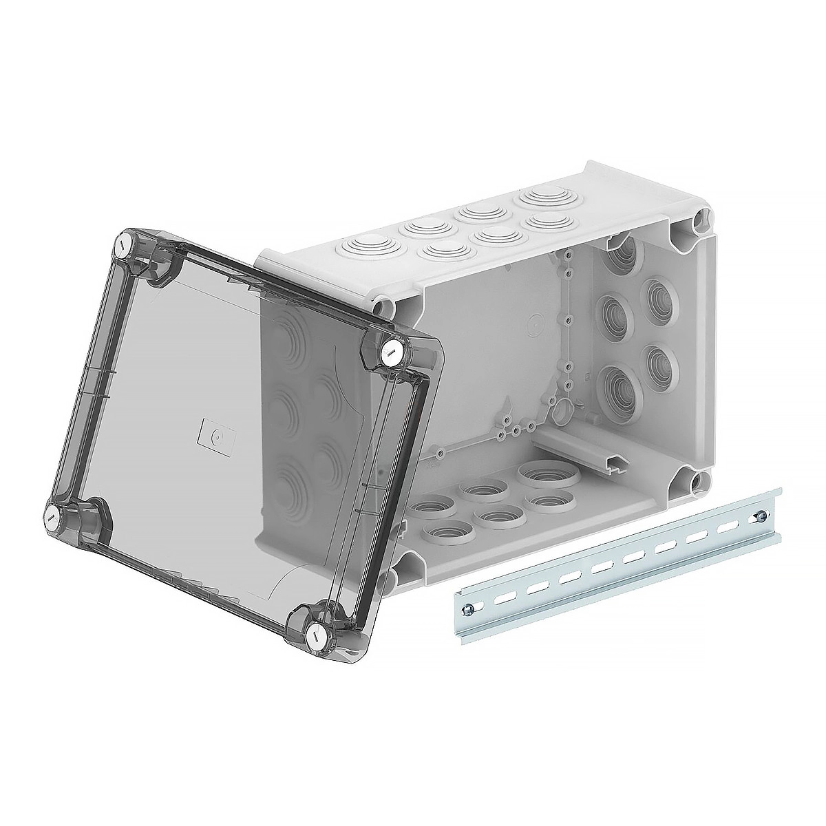 Obo leágazódoboz magasított átlátszó fedéllel 285x201x139, világos szürke 2007758