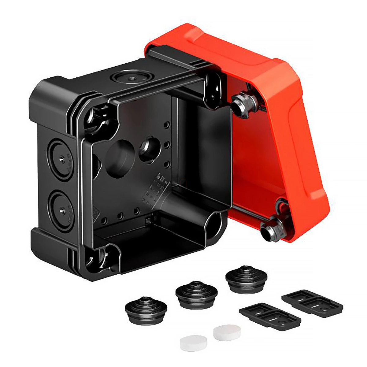 Obo leágazódoboz piros fedéllel 114x114x78, fekete / piros 2005148