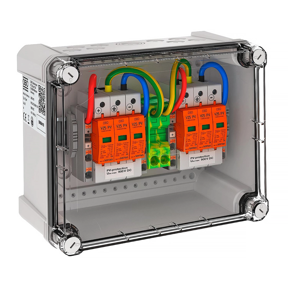 OBO PVG-BC 900K 110 OBO DC túlfeszültség-védelem napelemes rendszerekhez IP67 dobozban 2x1 PV-String , 2 WR-MPP 900V 5088410