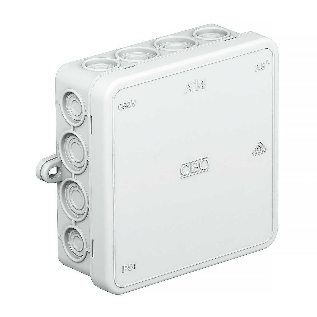 Kötődoboz 100x100x38 A14 OBO 2000378 sorkapocs nélkül PE világosszürke