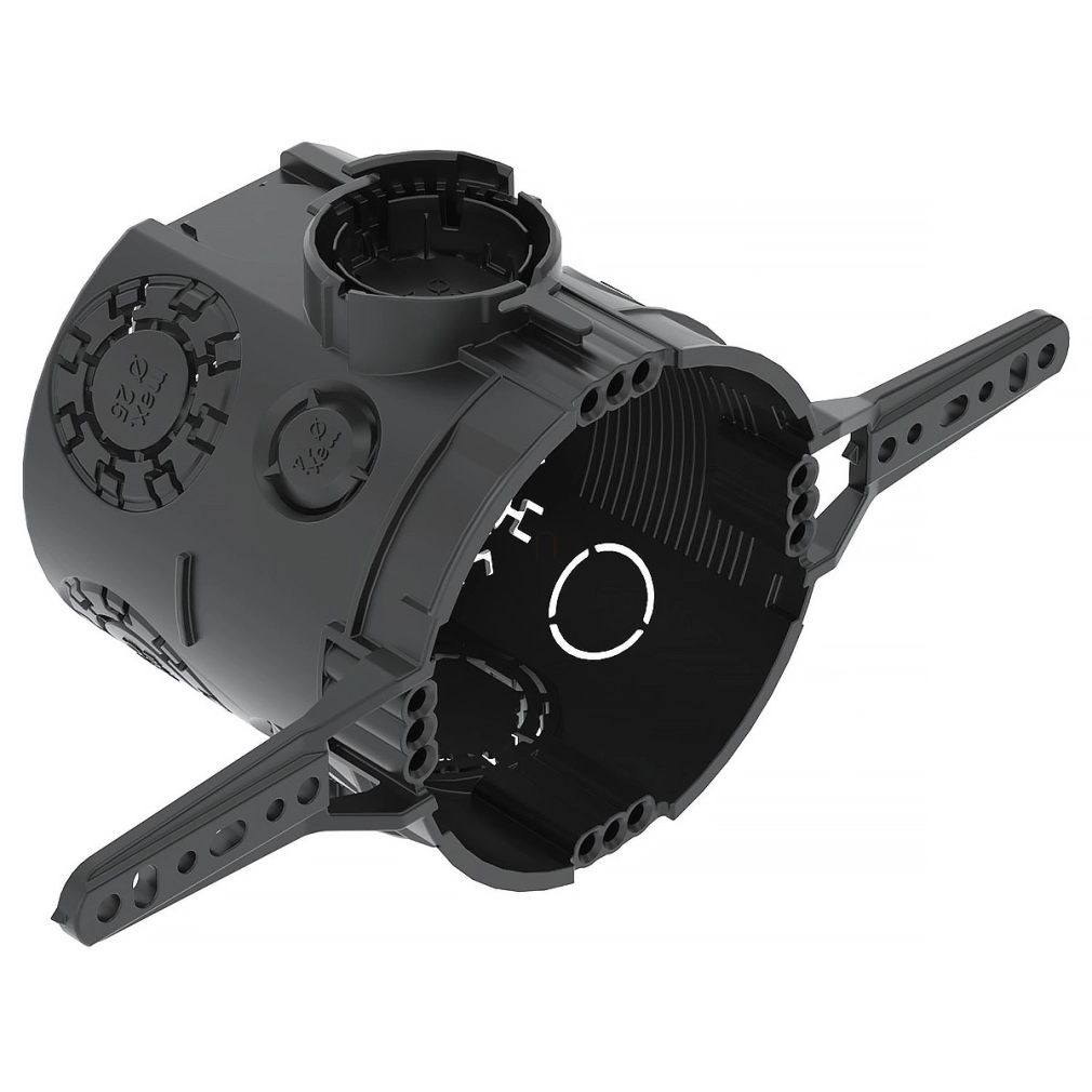 Obo szerelvény- /kötődoboz vakolat alatti, rögzítőfüllel O60mm, H66mm, fekete 2003716