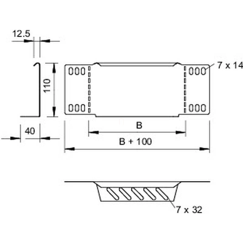 Obo szűkítő-sarokelem/ véglezáró kábeltálcához 110x500, szalaghorganyzott, DIN EN 10346, cink 7111509
