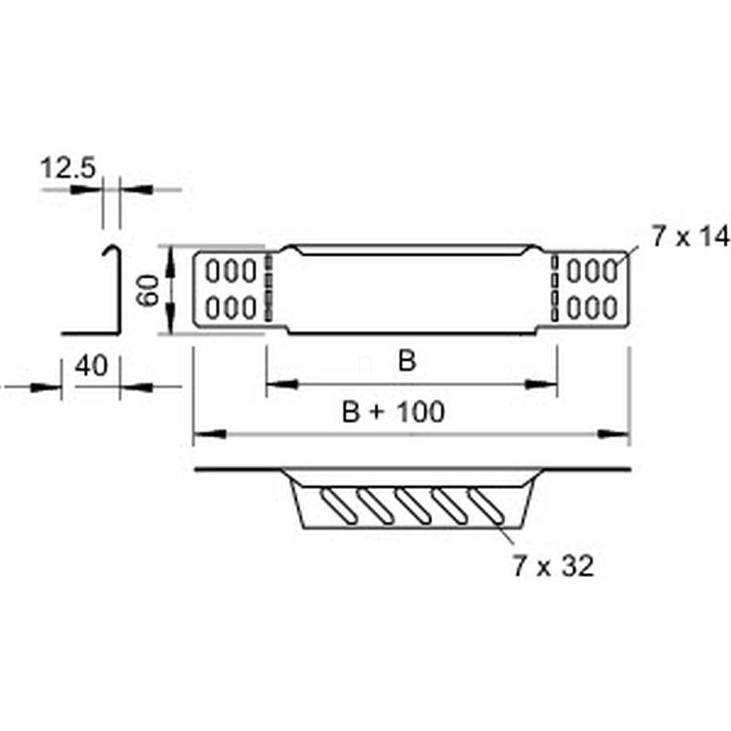Obo szűkítő-sarokelem/ véglezáró kábeltálcához 60x300, szalaghorganyzott cink/alumínium, Double Dip, DIN EN 10346, cink 7106118