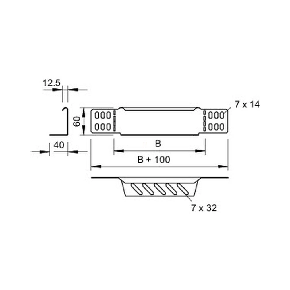 Obo szűkítő-sarokelem/ véglezáró kábeltálcához 60x600, szalaghorganyzott, DIN EN 10346, cink 7109601