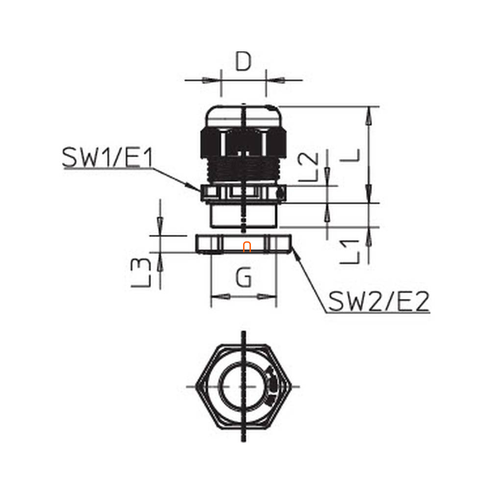 tömszelence ellenanyával tűzálló dobozhoz M25, PA, narancs, 2003