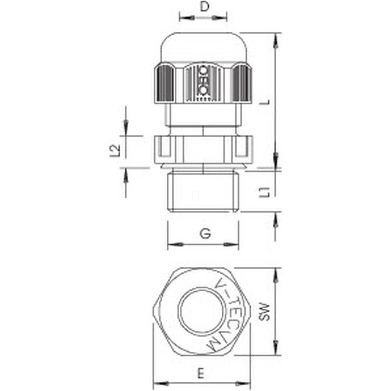 Tömszelence hosszú menettel M32 világosszürke 15-21mm V-TEC VM L32 LGR 2022951 OBO