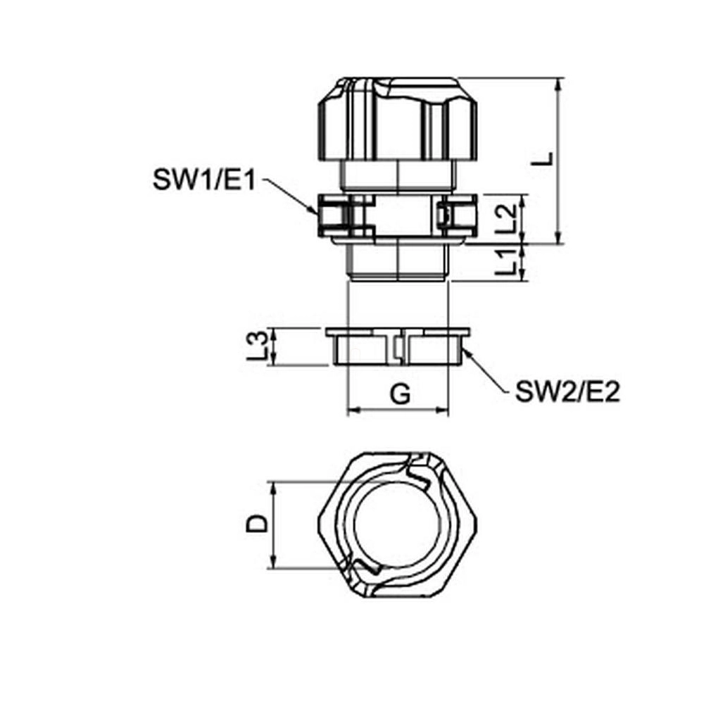 \ntömszelence összepattintható ellenanyával, tömítéssel M25, PC, világosszürke