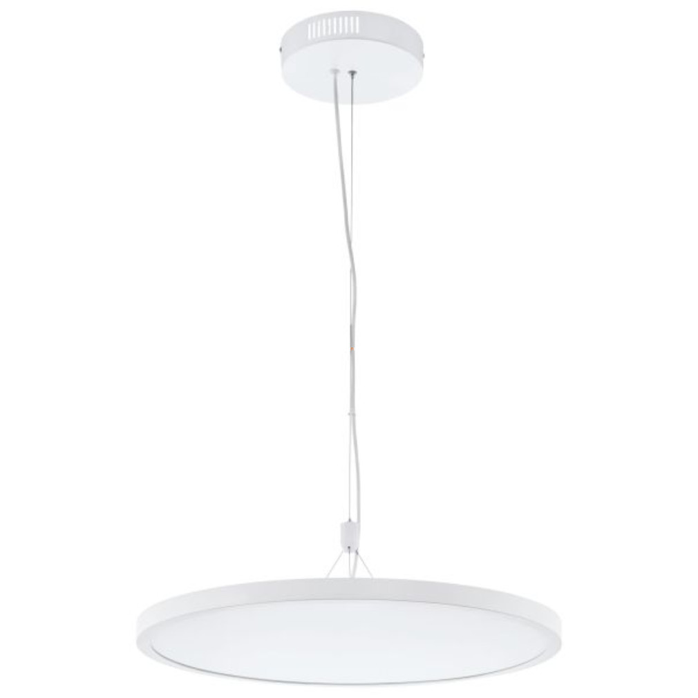 A Salobrena-C-RGBW Eglo 33676 okos függesztett LED lámpa modern világítástechnikai megoldás, amely 60 cm átmérőjű, fehér színű lámpatesttel rendelkezik. A termék integrált 32 W teljesítményű LED modullal szerelt, amely 3400 lumen fényáramot biztosít, így hatékony megvilágítást nyújt. A lámpa színhőmérséklete 2700 és 6500 Kelvin között szabadon változtatható, továbbá RGBW technológiának köszönhetően színes fények is beállíthatók. A világítás fényereje igény szerint dimmelhető, a vezérlés Bluetooth interfészen keresztül történik. A lámpatest acél, alumínium és műanyag anyagokból készült, IP20 védettséggel rendelkezik, amely beltéri használatra ideális. A termék magassága 1100 mm, csomagolási méretei 64x64x10 cm, tömege 5,558 kg. A fényforrás a lámpatestbe integrált LED modul, amely hosszú élettartamot és energiatakarékos működést biztosít.