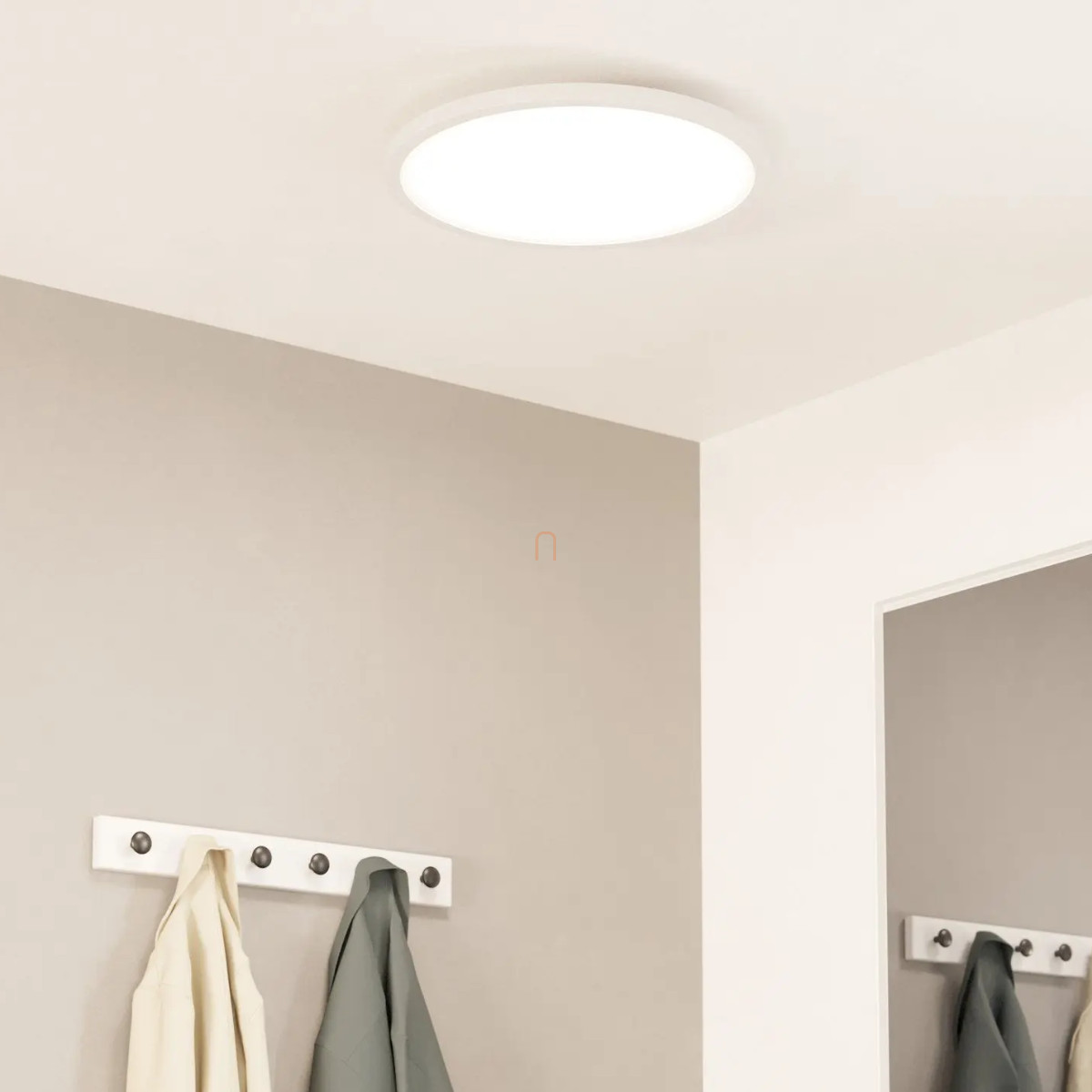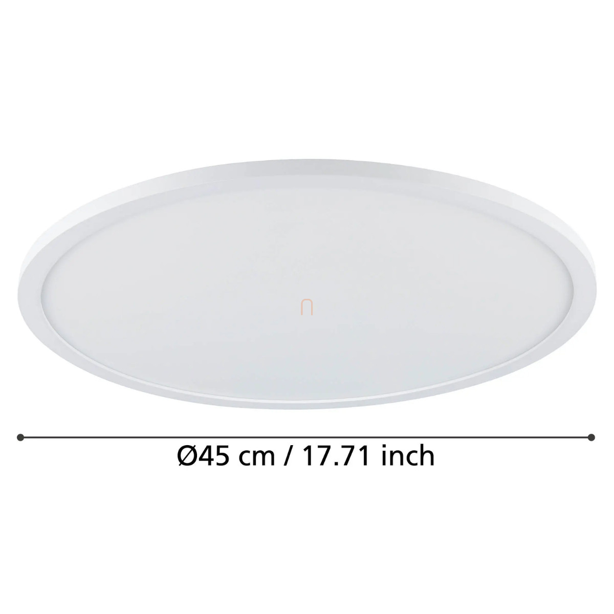 A Sarsina-Z Eglo 900758 okos LED mennyezeti lámpa modern technológiát ötvöz letisztult dizájnnal. A 33,5 wattos LED modul 4300 lumen fényáramot biztosít, amely változtatható fehér fényben, 2700 és 6500 Kelvin közötti színhőmérsékleten működik. A lámpatest alumínium, acél és műanyag anyagokból készült, fehér színben, 450 mm átmérővel és 52 mm magassággal. Bluetooth kapcsolaton keresztül vezérelhető, a fényerő és a színhőmérséklet applikációval vagy opcionális távirányítóval szabályozható. A lámpa IP20 védettségi besorolással rendelkezik, így beltéri használatra alkalmas. A beépített LED modul hosszú élettartamot és energiahatékonyságot biztosít.