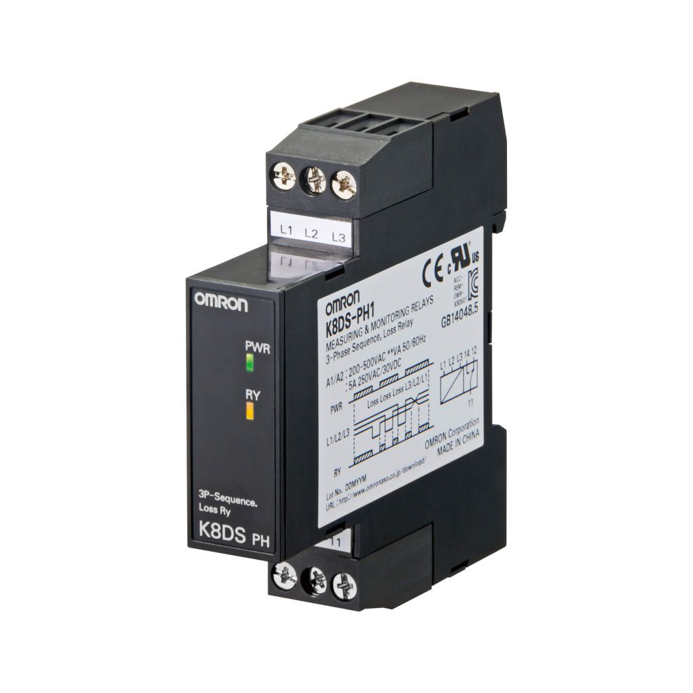 OMRON K8DS-PH1 fázissorrendet és fáziskiesést figyelő relé, 200–500VAC