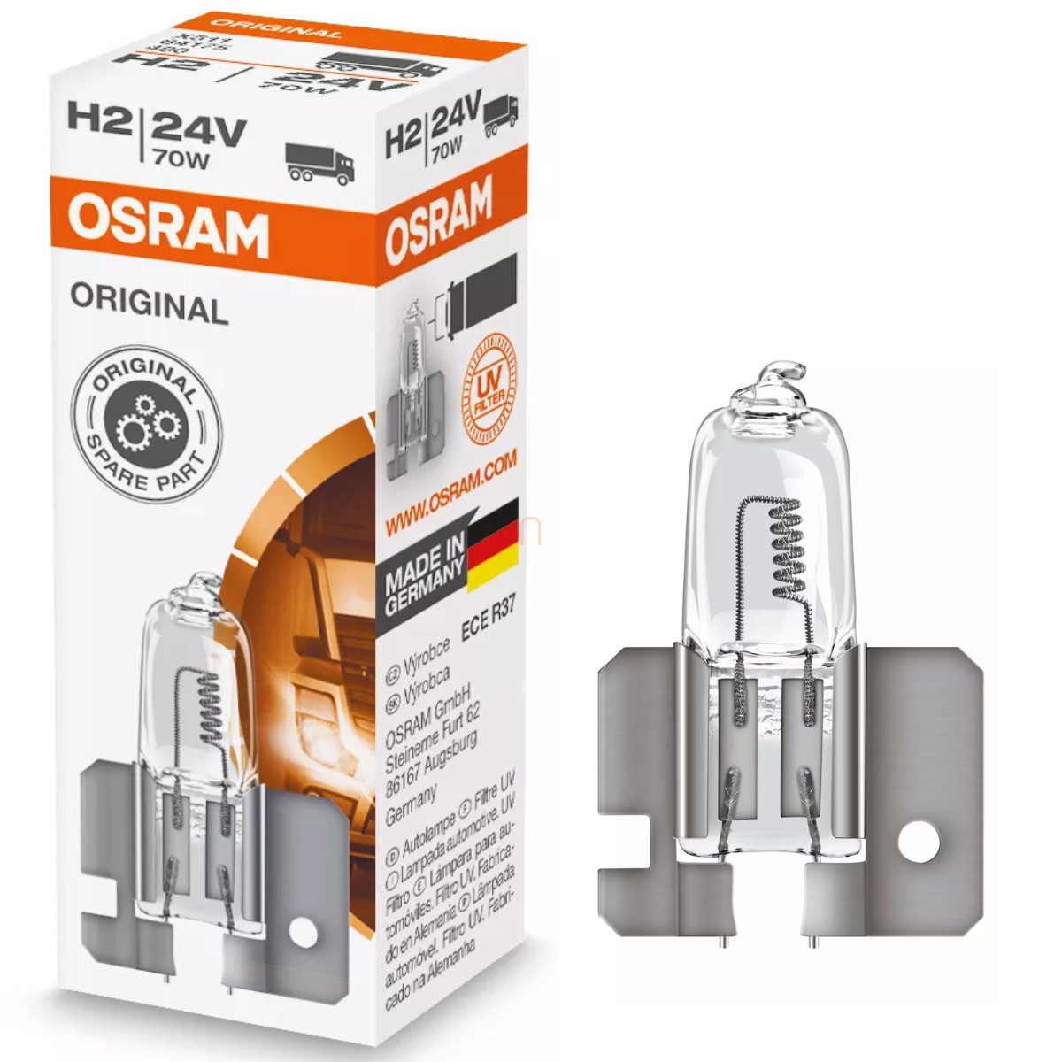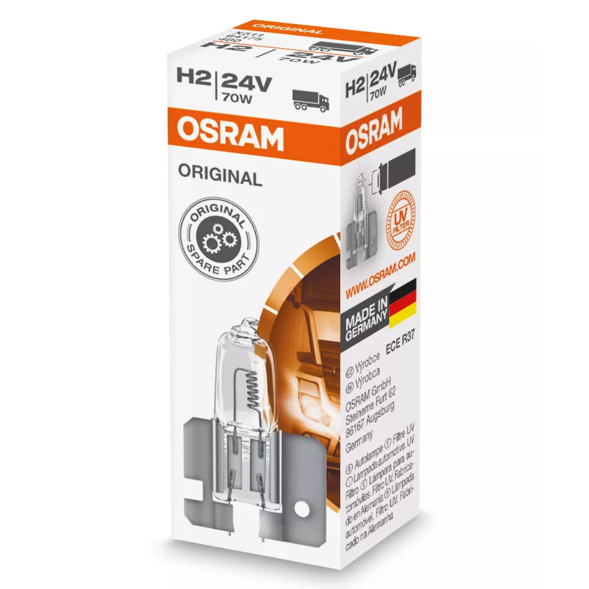 Az Osram Original Line H2 halogén fényszórólámpa kifejezetten a 24 voltos tehergépjárművek követelményeihez lett tervezve, kompromisszumok nélküli megbízhatóságot és tartósságot biztosítva a mindennapi közlekedésben. Ez a típus ideális választás azoknak a fuvarozóknak, járműüzemeltetőknek és szervizeknek, akik gazdaságos, de gyári szintű minőséget keresnek. A lámpa névleges feszültsége 24 V, teljesítménye 70 watt, amelynek köszönhetően 2150 lumen fényáramot biztosít – ez megbízható világítást garantál még kedvezőtlen látási viszonyok között is. A színhőmérséklete 3200 Kelvin, ami természetes, enyhén meleg fényt biztosít, javítva a kontrasztokat az éjszakai vezetés során. A 9 mm-es átmérővel és 31 mm-es hosszúsággal rendelkező, X511 típusú foglalattal ellátott lámpa könnyedén és pontosan illeszkedik a szabványos lámpatestekbe, így a beszerelése gyors és problémamentes. A mintegy 250 órás élettartama robusztus felépítéssel párosul, amely ellenáll a teherautókra jellemző erőteljes rezgéseknek és mechanikai igénybevételnek. Az Osram, mint több mint 100 éves tapasztalattal rendelkező világítástechnikai specialista, ebben a termékben is ötvözi a megbízhatóságot a fejlett gyártástechnológiával. Az Original Line sorozat a világ vezető járműgyártóinak bizalmát élvezi, akik alapfelszereltségként vagy hivatalos pótalkatrészként választják az Osram halogénizzókat. Ez a modell egyaránt megfelel azoknak, akik hosszú távú megbízhatóságot, egyszerű cserélhetőséget és kiemelkedő ár-érték arányt várnak el. A lámpa kiválóan teljesít hosszú fuvarok alatt, autópályán, éjjeli vezetés közben vagy akár nehéz útviszonyok között is. A termék csomagolása környezetbarát hajtogatott dobozban érkezik, amely nemcsak praktikus, de fenntartható megoldást is jelent. Az Osram Original Line H2 tehát tökéletes választás minden olyan járműflottához, amelyben a világítás nemcsak biztonsági, hanem gazdaságossági szempontból is kiemelt szerepet kap. Ez a modell biztosítja, hogy a jármű világítása mindig optimális szinten működjön, és ne állítsa meg a munkát váratlan meghibásodás. Ha megbízható világítási megoldást keresel a mindennapos szállítási feladataidhoz, az Osram Original Line H2 izzóval biztosra mehetsz.