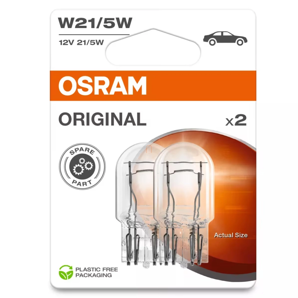 Osram Original Line W21/5W jelzőizzó, dupla szálas kialakítás, 12V, 21/5W, üvegfejes ék alakú foglalat, 440/35 lumen fényáram, autós alkalmazásra, 7515-2BL, 2db/csomag