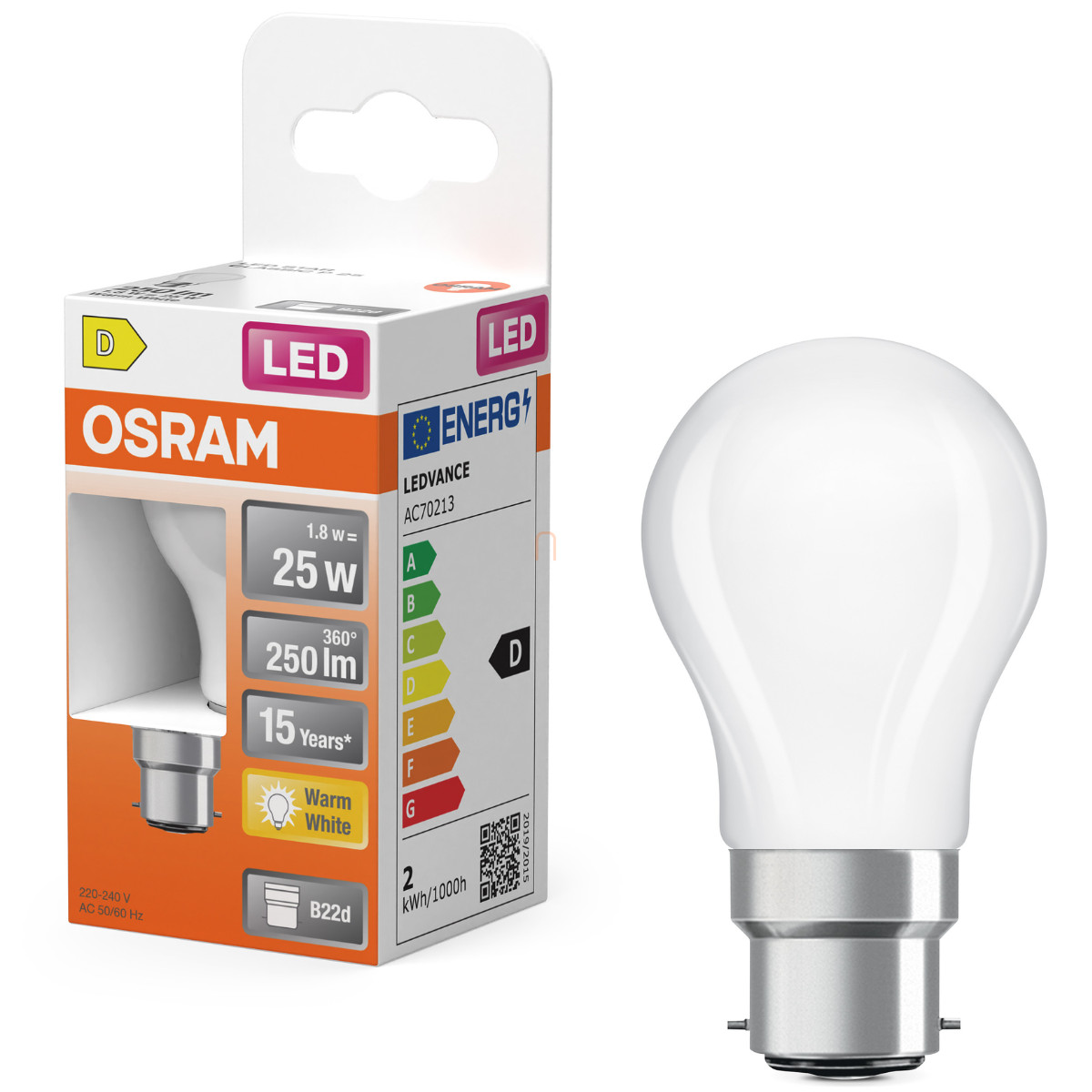 Osram B22d LED 1,8W, 250 lm, 2700 K, melegfehér, opál üveg-25 W izzó helyett - Superstar Classic P