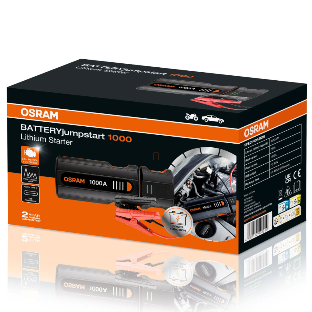 Az Osram Batteryjumpstart 1000 egy modern, sokoldalú és megbízható lítium-ion gyorsindító eszköz, amelyet kifejezetten a 12 V-os járművekhez terveztek. Ez a kompakt készülék ideális megoldás, ha megbízható indítási segítségre van szükséged, különösen váratlan helyzetekben, például egy teljesen lemerült akkumulátor esetén. Akár 5 literes benzin- vagy 2 literes dízelmotorral rendelkező járműveket is képes gyorsan újraindítani, így kiváló választás a legtöbb személyautó, SUV, kisteherautó és kishaszonjármű tulajdonosának. A 8000 mAh kapacitású lítium-kobalt akkumulátor elegendő energiát biztosít ahhoz, hogy biztos kézzel indítsd újra járművedet, még extrém körülmények között is. A boost funkció lehetővé teszi a teljesen lemerült akkumulátorok újraindítását, így elkerülhető a vontatás vagy az útszéli várakozás. Az ergonomikus kialakítású, intelligens bilincscsatlakozó hosszabb kábelekkel rendelkezik, így még a nehezen hozzáférhető akkumulátorokhoz is könnyen csatlakoztatható. A biztonsági funkciók – úgymint a fordított polaritás elleni védelem, szikravédelem és rövidzárlat elleni védelem – hang- és LED-jelzésekkel egészülnek ki, így minimálisra csökken a hibás használat esélye. Ez különösen hasznos azoknak, akik nem rendelkeznek műszaki háttértudással, de biztonságosan szeretnék használni a készüléket. A beépített LED zseblámpa megkönnyíti a munkát sötét környezetben, míg a LED-es töltöttségjelzők az akkumulátor aktuális állapotát mutatják, így mindig tudhatod, mikor szükséges újratölteni. A beépített PD30W gyorstöltési technológia lehetővé teszi okostelefonok, táblagépek és más eszközök gyors töltését az USB-C és USB-A portokon keresztül, így az eszköz nemcsak indításra, de power bankként is tökéletesen használható. A készülék kis mérete és lapos kialakítása lehetővé teszi, hogy könnyedén elférjen a kesztyűtartóban vagy a csomagtartóban, így mindig kéznél lehet, amikor szükség van rá. Az Osram Batteryjumpstart 1000 ideális választás mindazoknak, akik egy kompakt, mégis nagy teljesítményű, többfunkciós indítóeszközt keresnek. Különösen hasznos lehet hosszabb utazások során, téli időszakban, vagy ha a jármű hosszabb ideig parkol. Nem ajánlott azonban azoknak, akiknél a járműmotor meghaladja az 5 literes benzin- vagy a 2 literes dízelkapacitást, mivel ezekhez nagyobb indítóáram szükséges. Ha egy biztonságos, intelligens és praktikus eszközt keresel, amely vészhelyzetekben is megbízható társad lesz, akkor az Osram Batteryjumpstart 1000 minden elvárásnak megfelel. Megbízhatósága, sokoldalúsága és erőteljes teljesítménye révén ideális választás bármilyen járművezető számára.