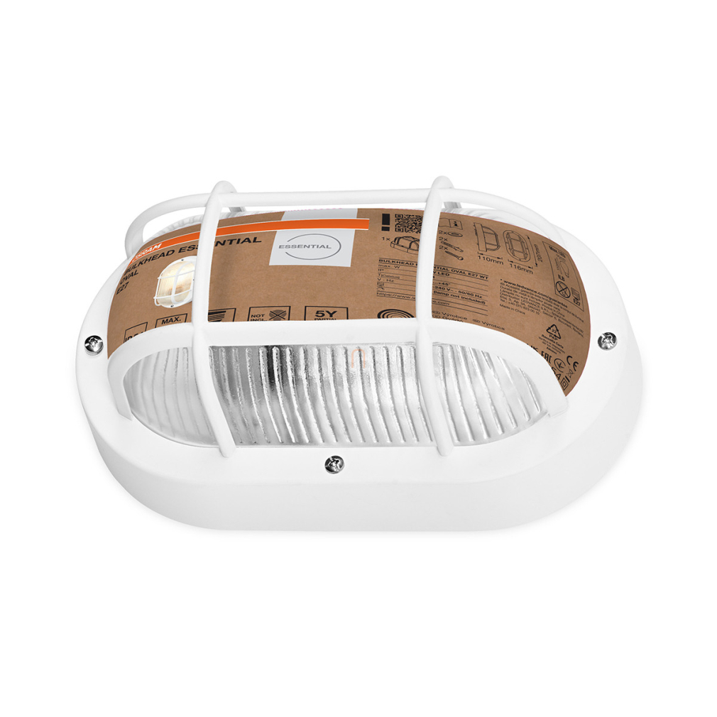 Hajólámpa védőráccsal, fehér - Osram Bulkhead Essential Oval, 1xE27 foglalattal, 220-240 V