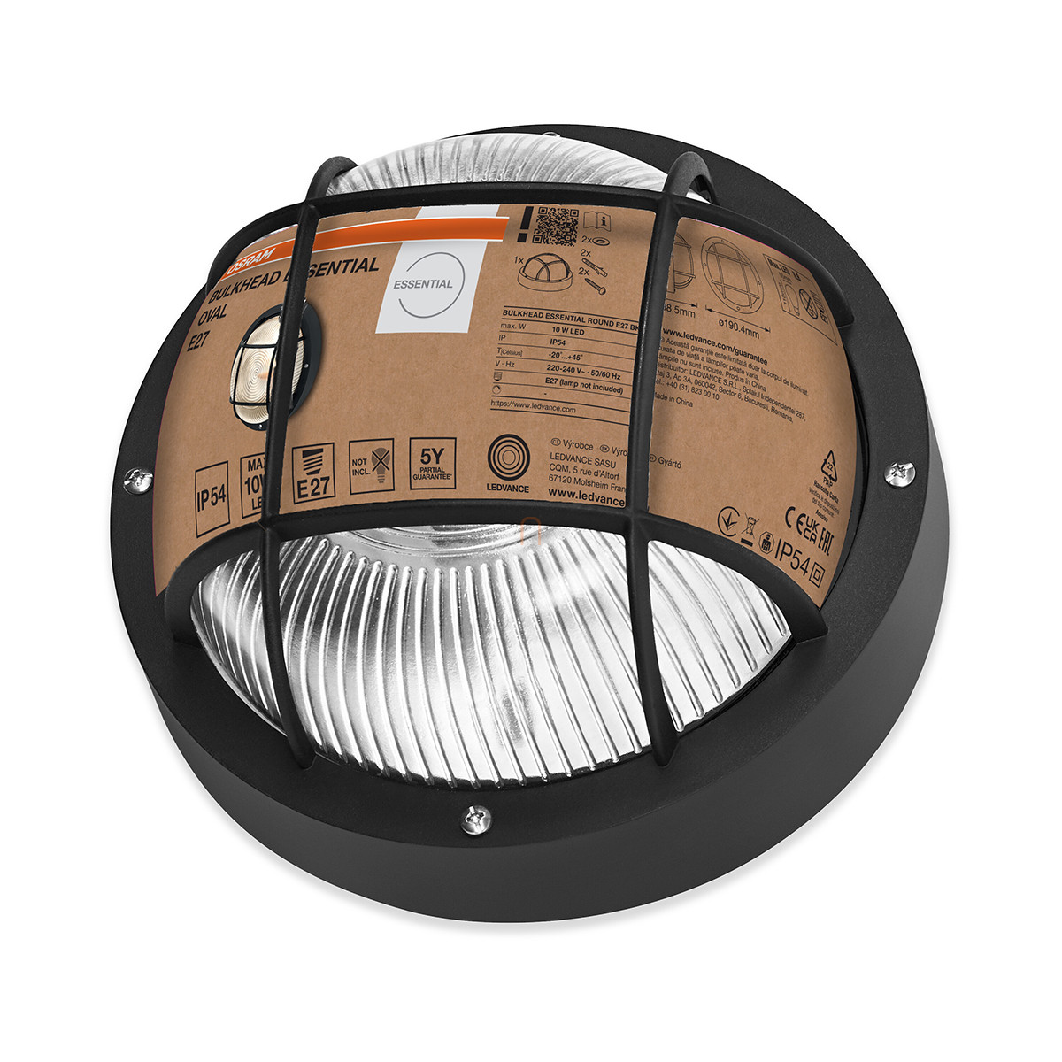 Hajólámpa védőráccsal, fekete - Osram Bulkhead Essential Round, 1xE27 foglalattal, 220-240 V