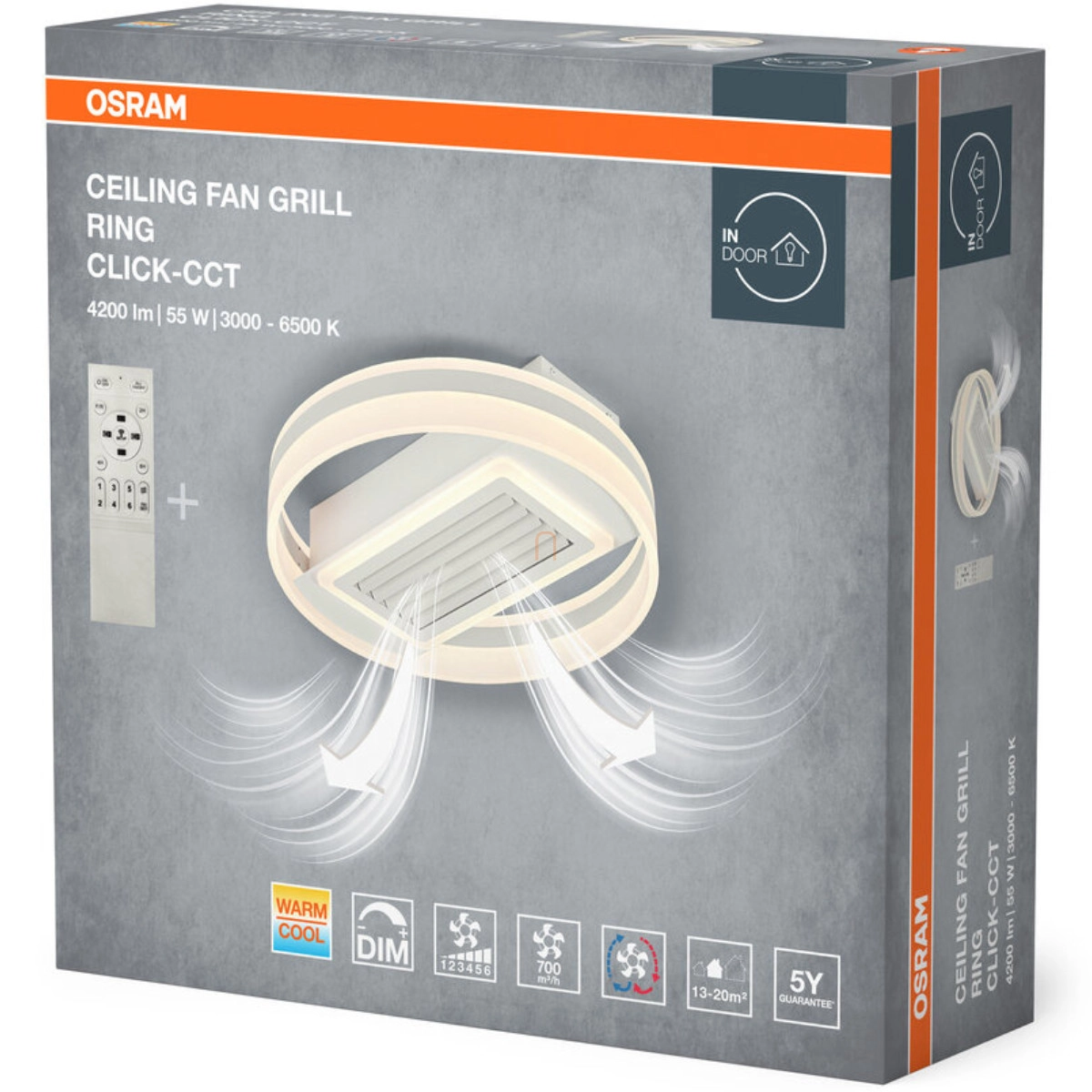 Osram Ceiling Fan Grill Ring ventilátoros mennyezeti LED lámpa távirányítóval, 55W 3000-6500 K fehér