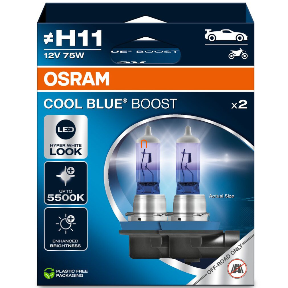 Az Osram Cool Blue Boost H11 halogén izzó off-road használatra, a 62211CBB-2HB cikkszámú változatban, olyan járműtulajdonosok számára készült, akik terepen szeretnének maximális látásteljesítményt és modern LED-hatású megjelenést elérni. Az Osram több mint százéves világítástechnikai tapasztalatának köszönhetően ez a modell is a megbízhatóság, a dizájn és az innováció jegyében készült. A 12 voltos rendszerhez tervezett 75 wattos teljesítményével és 5500 Kelvin színhőmérsékletével ez az izzó erőteljes, hiperfehér fényt bocsát ki, amely LED-es hatást kelt, miközben kiemelkedő láthatóságot biztosít. A 1000 lumen fényáram és ±15% tűrés optimális fénykévét nyújt extrém körülmények között is. Az izzó PGJ19-2 foglalattal és 67 mm hosszúsággal rendelkezik, így könnyedén illeszkedik a legtöbb H11 típusú fényszóróval szerelt járműbe. Az akár 400 órás Tc élettartam ideálissá teszi a terméket hosszabb, kihívást jelentő off-road használathoz. A 62211CBB-2HB különösen ajánlott terepjárókhoz, erdei vagy ipari munkakörnyezetben használt járművekhez, valamint mindazoknak, akiknek elsődleges szempont a maximális látótávolság és a gyorsabb reakcióképesség. Közúti használatra nem javasolt, mivel nem rendelkezik ECE engedéllyel. Ez a modell azoknak szól, akik terepen is a lehető legjobb fénytechnikai megoldásokat keresik, és nem elégszenek meg az átlagos világítással. A LED-es megjelenésű hiperfehér fény nemcsak a látási viszonyokat javítja, hanem modern, sportos karaktert is kölcsönöz a járműnek. Az Osram itt is a minőségi halogéntechnológiát ötvözi a látványos megjelenéssel, így biztos lehetsz benne, hogy az izzó nemcsak fényt, de stílust is ad a kalandjaidhoz. Ha terepen szeretnél kiemelkedő látási körülményeket teremteni és nem akarsz kompromisszumot kötni a megjelenés vagy a funkcionalitás terén, a 62211CBB-2HB tökéletes választás lesz számodra.