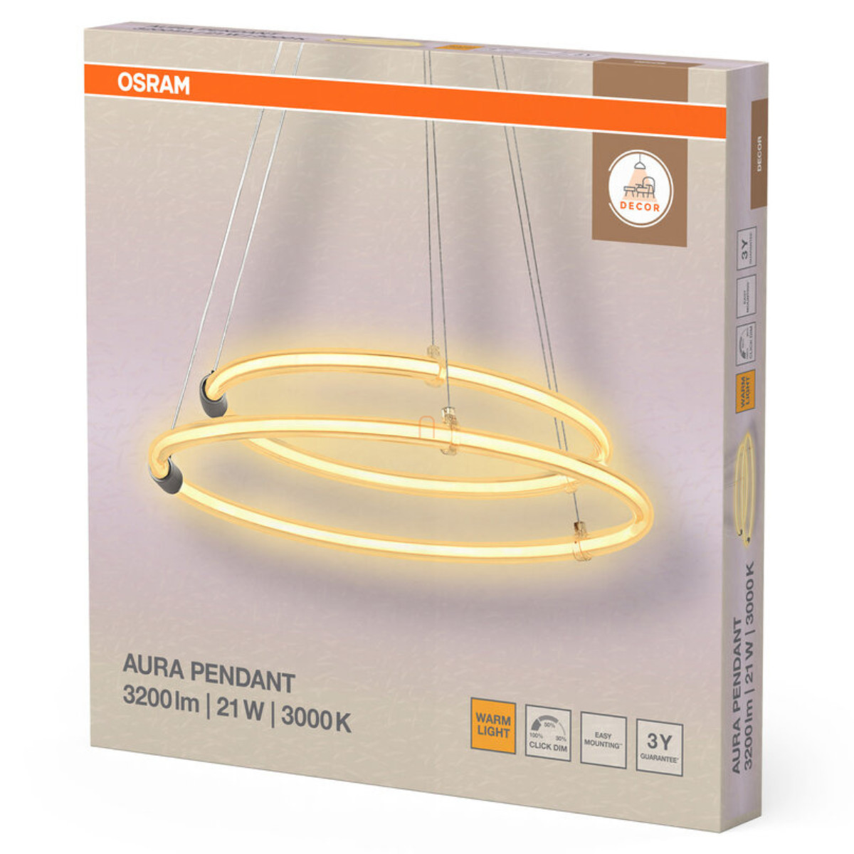 Függesztett LED lámpa - Osram Decor Aura , 3000 K, 2400 lm, 220-240 V