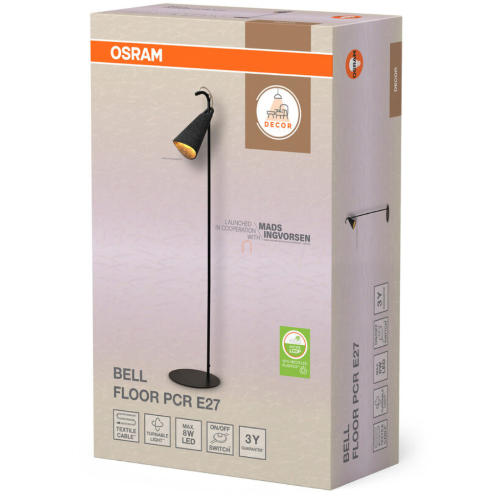 Állólámpa,fekete, 120 cm - Osram Decor Bell, 1xE27 foglalattal, 1.8 méteres kábellel, 220-240 V