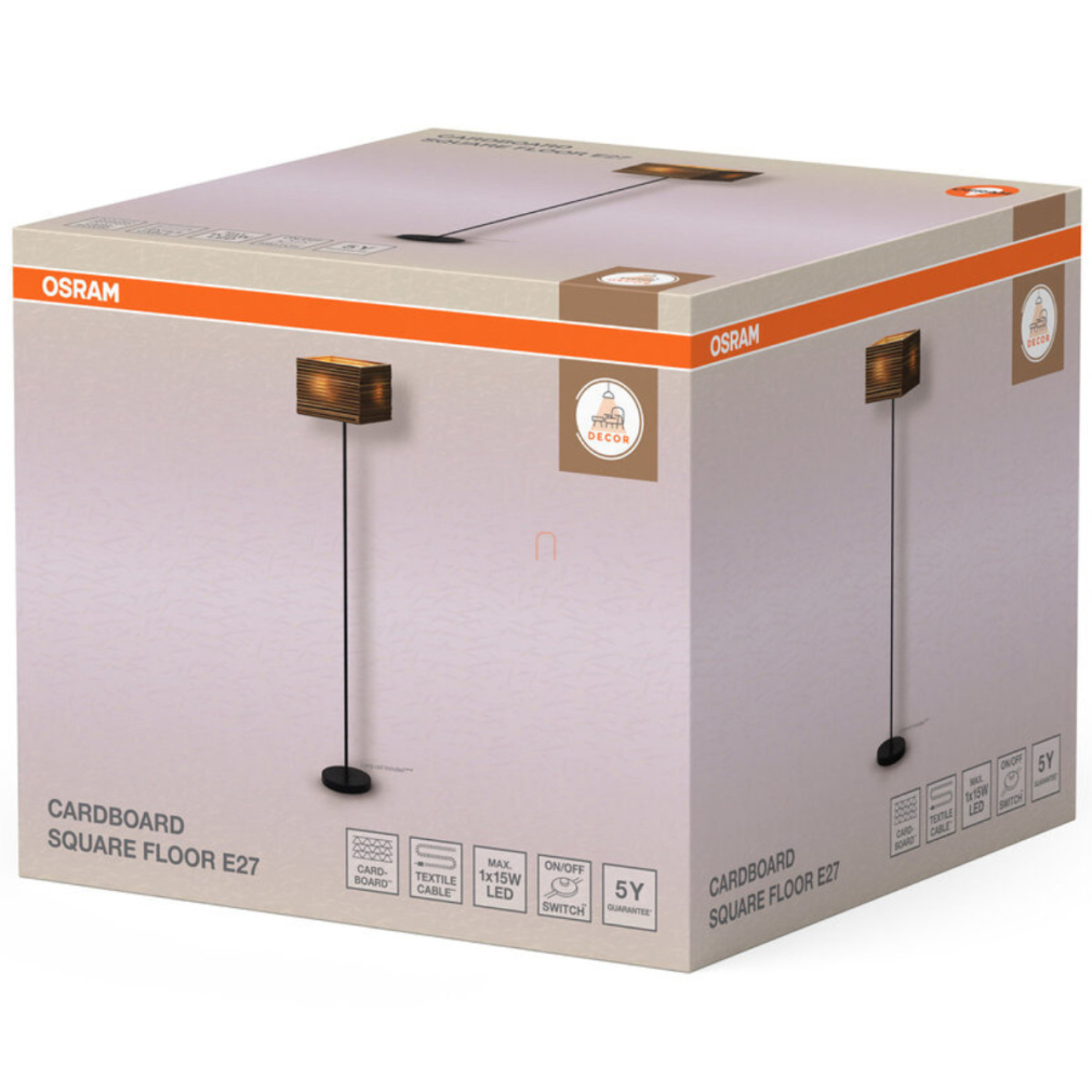 Karton állólámpa, 160 cm - Osram Decor Cardboard Square, 1xE27 foglalattal, 1.8 méteres kábellel, 220-240 V