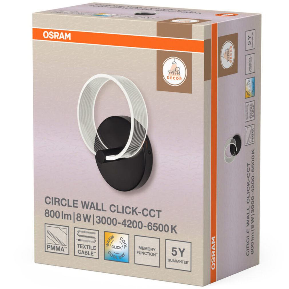 Szabályozható fali LED lámpa minimál stílusban - Osram Decor Circle, 3000/4200/6500 K, 370 lm, állítható színhőmérséklet, 220-240 V