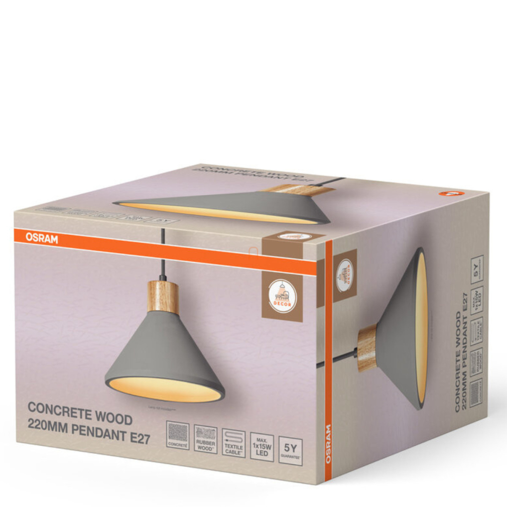Beton függesztett lámpa, 22 cm - Osram Decor Concrete Wood, 1xE27 foglalattal, 220-240 V