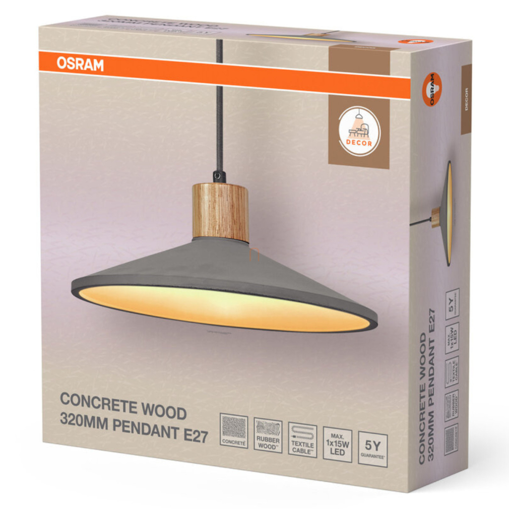 Beton függesztett lámpa, 32 cm - Osram Decor Concrete Wood, 1xE27 foglalattal, 220-240 V