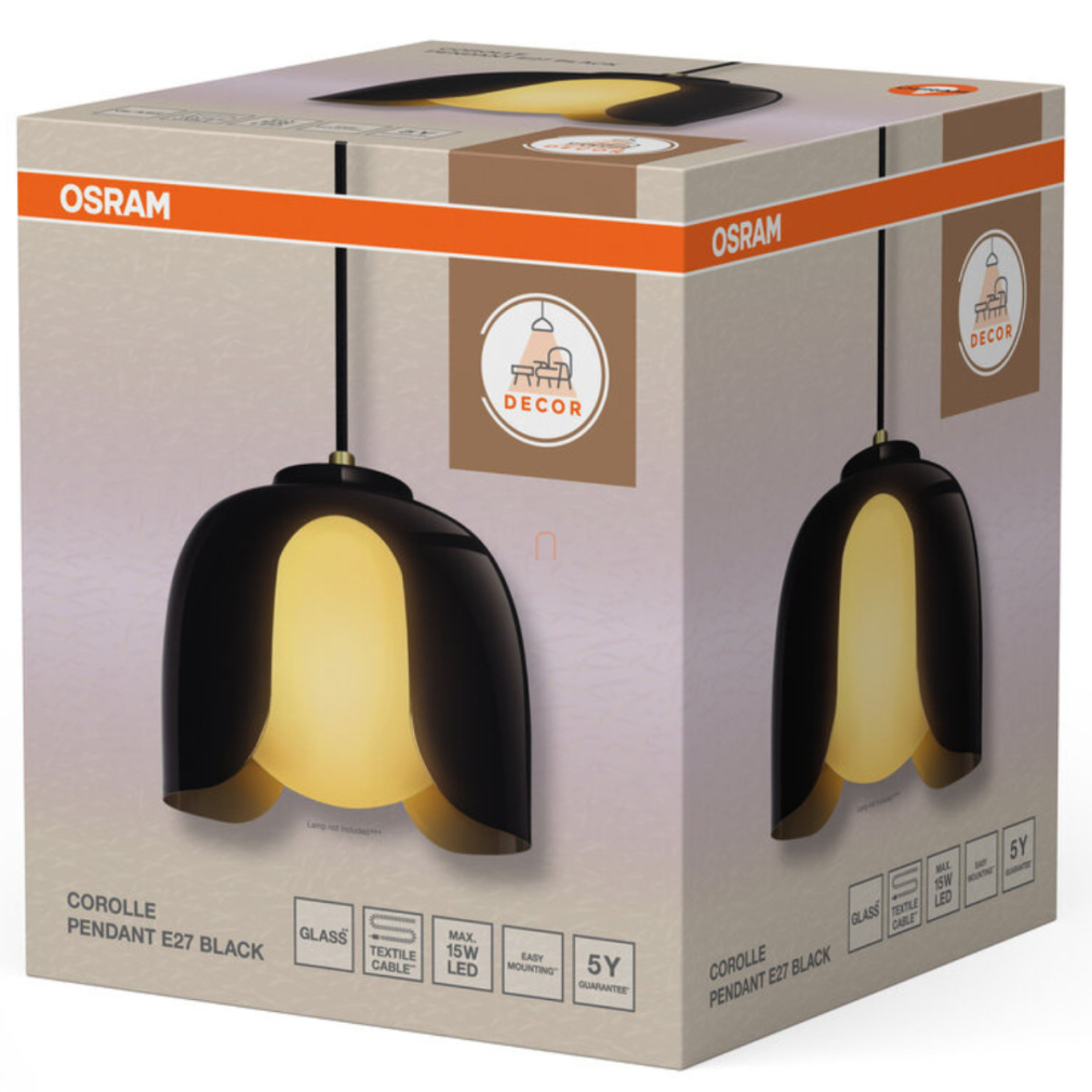 Függesztett lámpa, stilizált virág, fekete - Osram Decor Corolle, 1xE27 foglalattal, 220-240 V