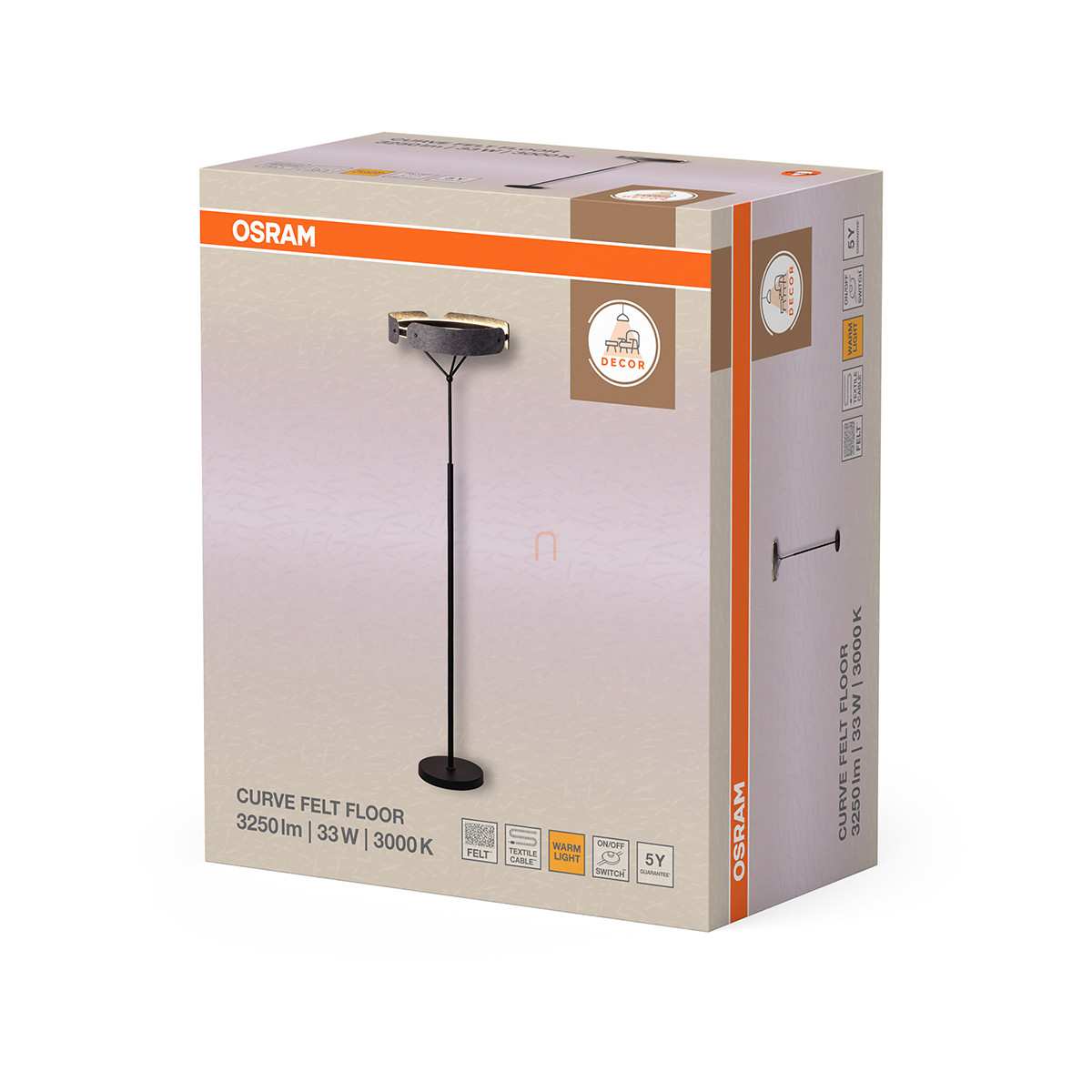 LED állólámpa szövet borítással, 150 cm - Osram Decor Curve Felt, 3000 K, 1000 lm, 33 W, 1.8 méteres kábellel, 220-240 V