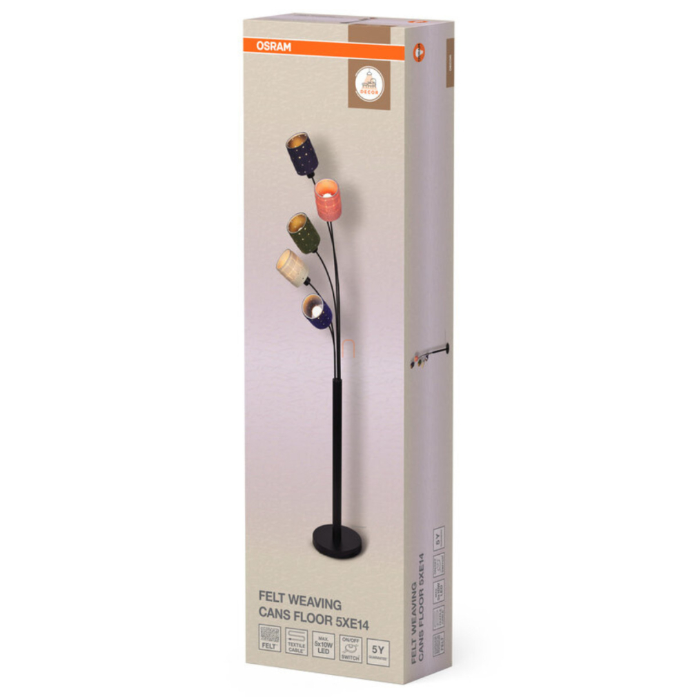 Multicolor állólámpa, 173 cm - Osram Decor Felt Weaving Cans, 5xE14 foglalattal, 1.8 méteres kábellel, 220-240 V