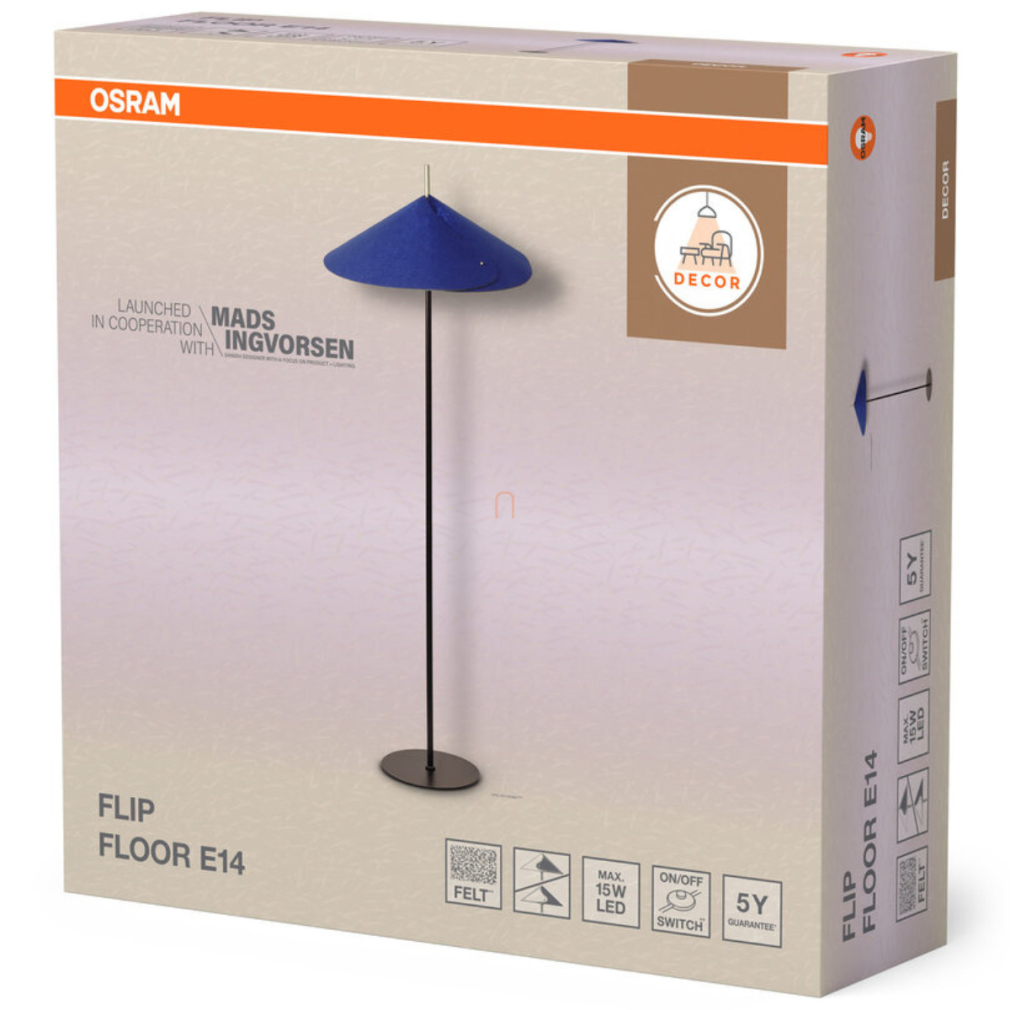 Állólámpa kék szövet borítással, 131,5 cm - Osram Decor Flip, 1xE14 foglalattal, 1.8 méteres kábellel, 220-240 V