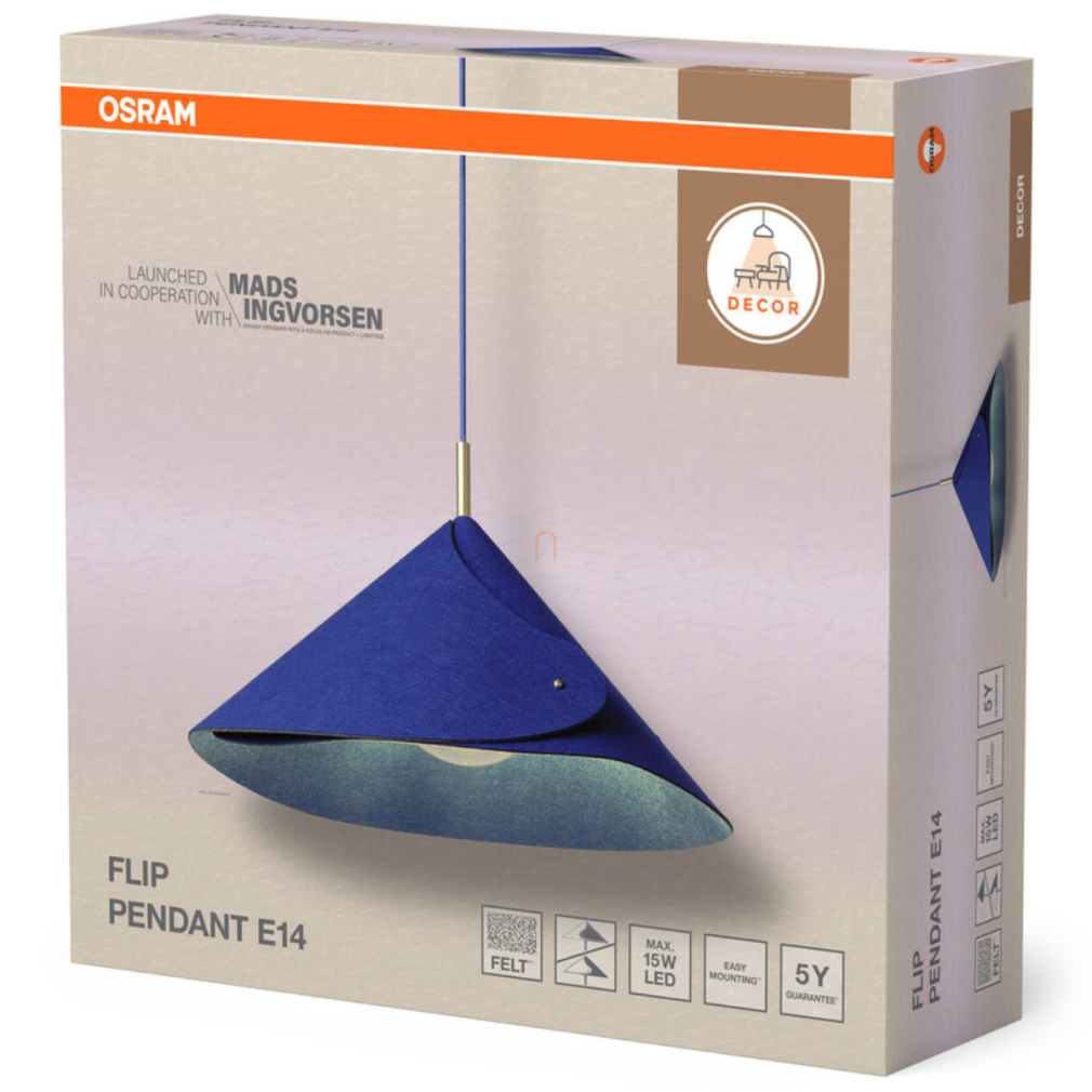 Függesztett szövet lámpa, kék - Osram Decor Flip, 1xE14 foglalattal, 220-240 V
