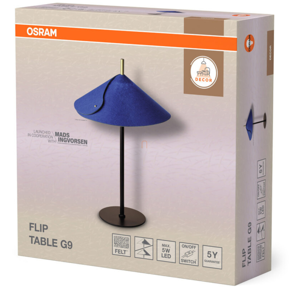 Asztali LED lámpa szövet borítással kék színben, 52 cm - Osram Decor Flip, 1xG9 foglalattal, 1,5 méteres kábellel, 220-240 V