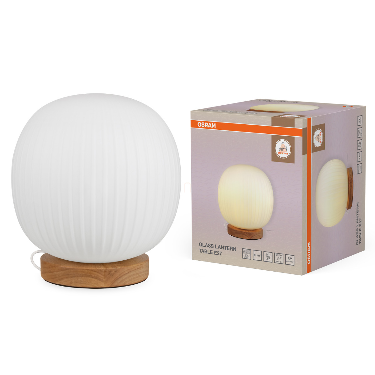 Osram Decor Glass Lantern asztali hangulatlámpa, fa hatású 1xE27 foglalattal
