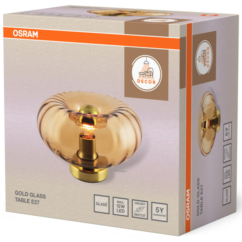Asztali üveg lámpa borostyán színben, 17,6 cm - Osram Decor Gold Glass, 1xE27 foglalattal, 1,5 méteres kábellel, 220-240 V