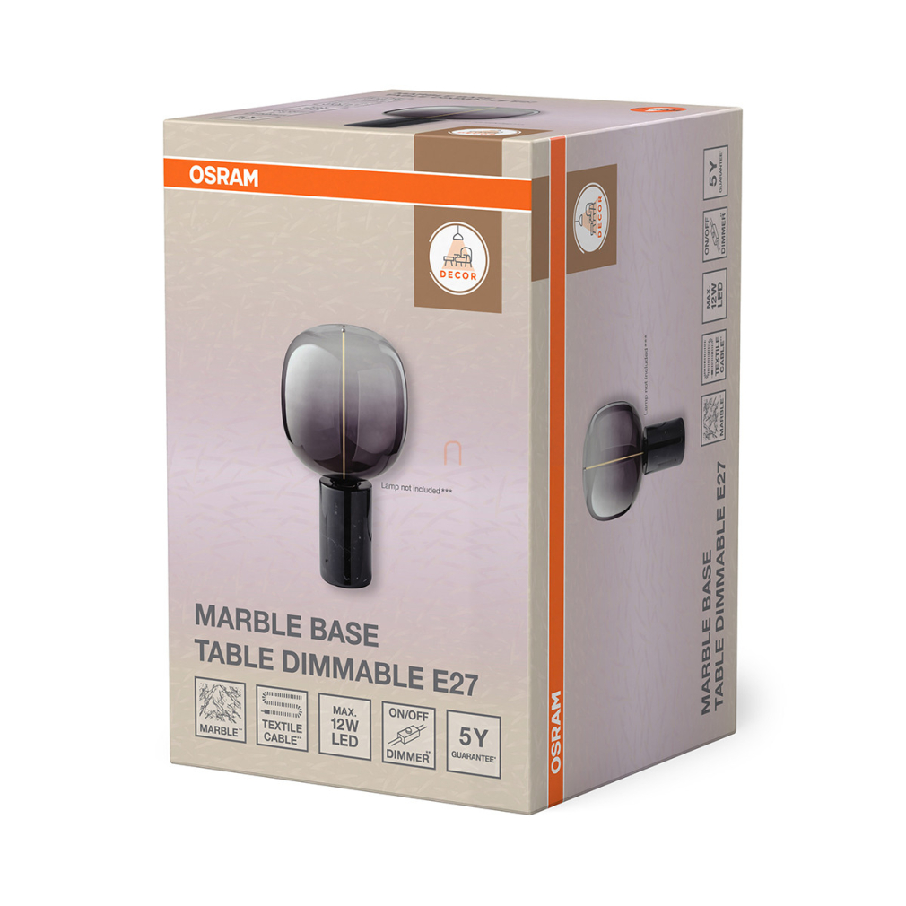 Márvány asztali lámpa vintage fényforrás nélkül, 13 cm, fekete - Osram Decor Marble Base, 1xE27 foglalattal, 1,5 méteres kábellel, 220-240 V