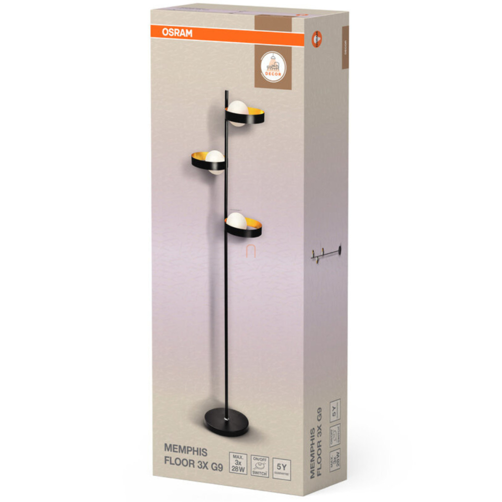 Osram gyűrűs állólámpa 3 foglalattal, fekete (Decor Memphis)