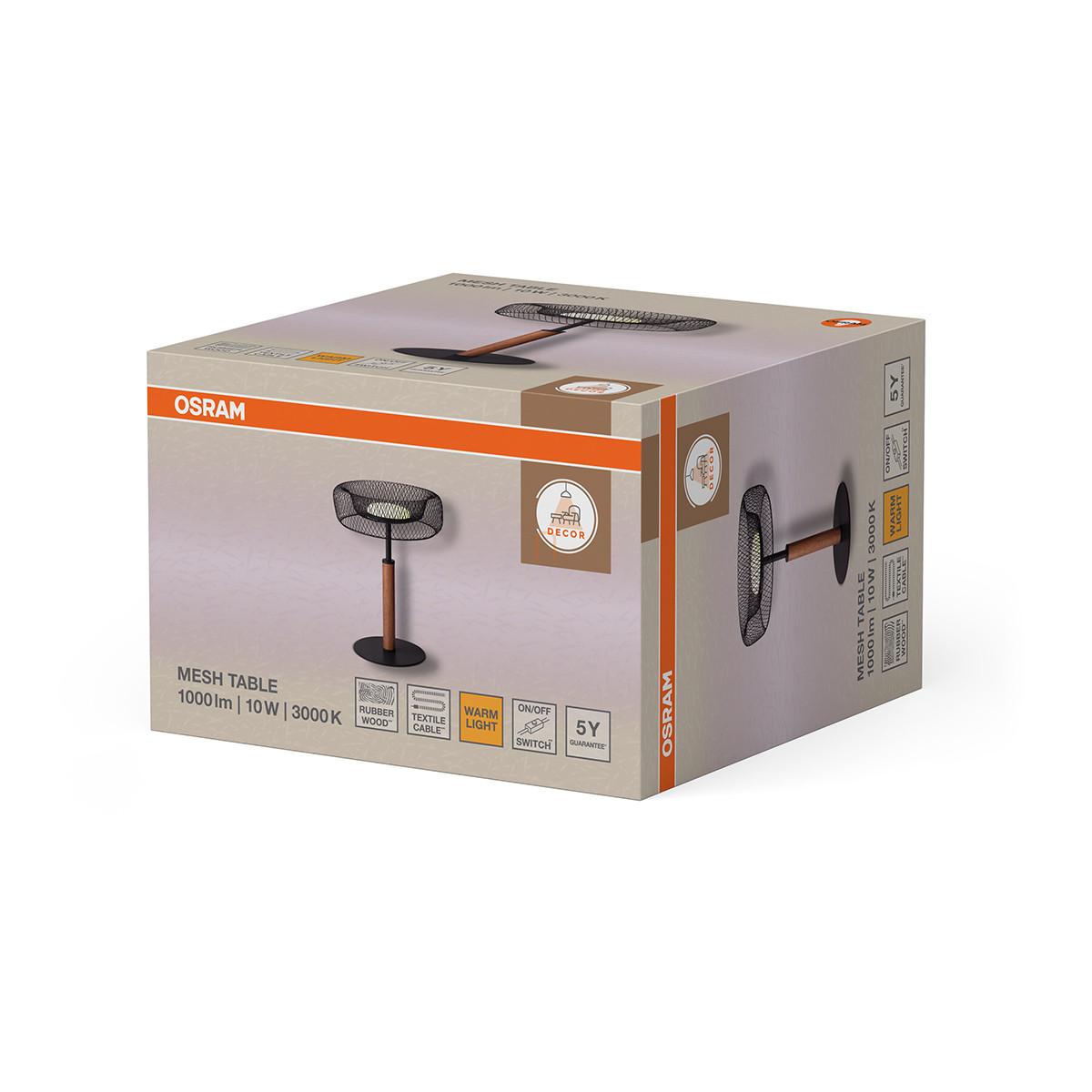 Fém hálós asztali LED lámpa, 40,3 cm - Osram Decor Mesh, 3000 K, 640 lm, 10 W, 1,5 méteres kábellel, 220-240 V
