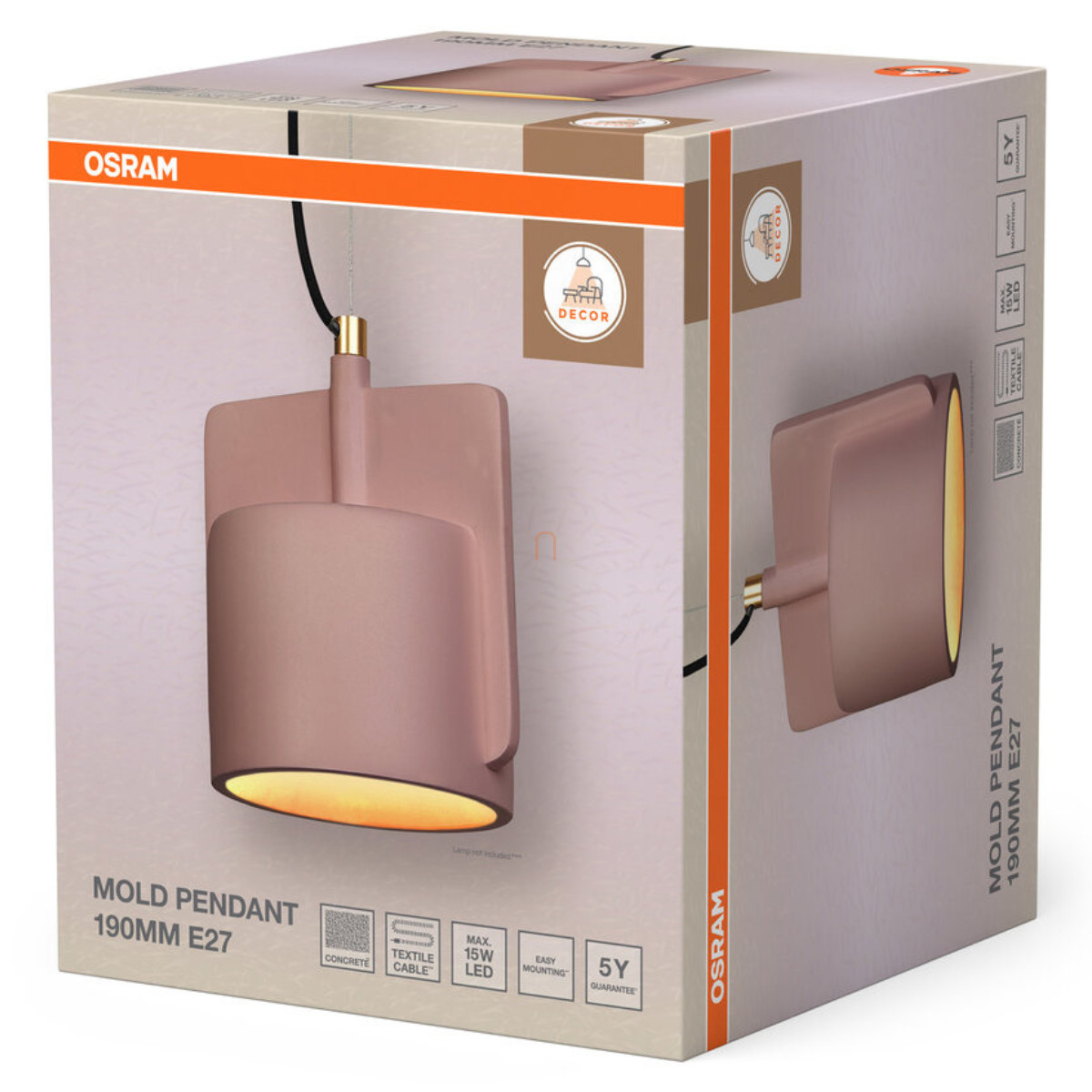 Osram Decor Mold függesztett beton lámpa, rózsaszín