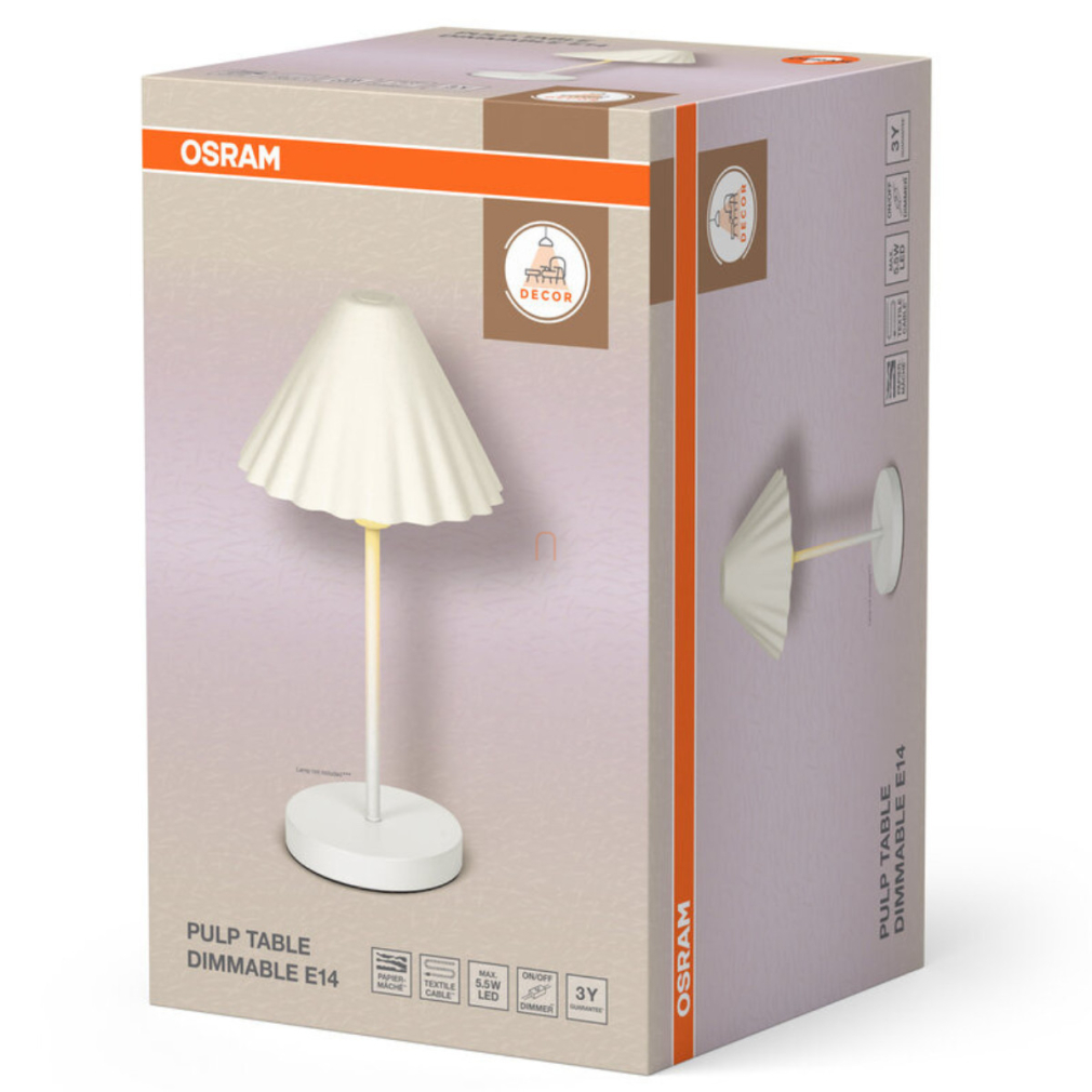 Asztali lámpa fodros ernyővel, 41,5 cm - Osram Decor Pulp, 1xE14 foglalattal, 2,65 méteres kábellel, 220-240 V