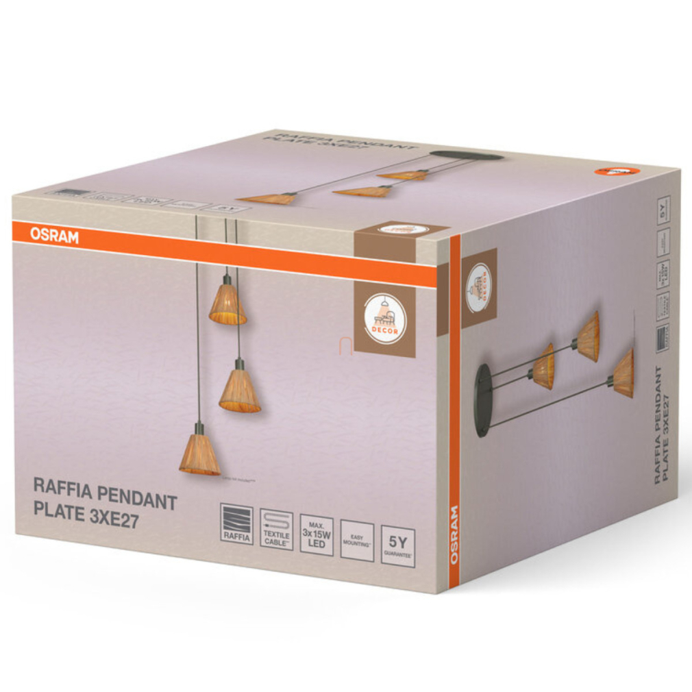 Raffia függesztett lámpa - Osram Decor Raffia Plate, 3xE27 foglalattal, 220-240 V